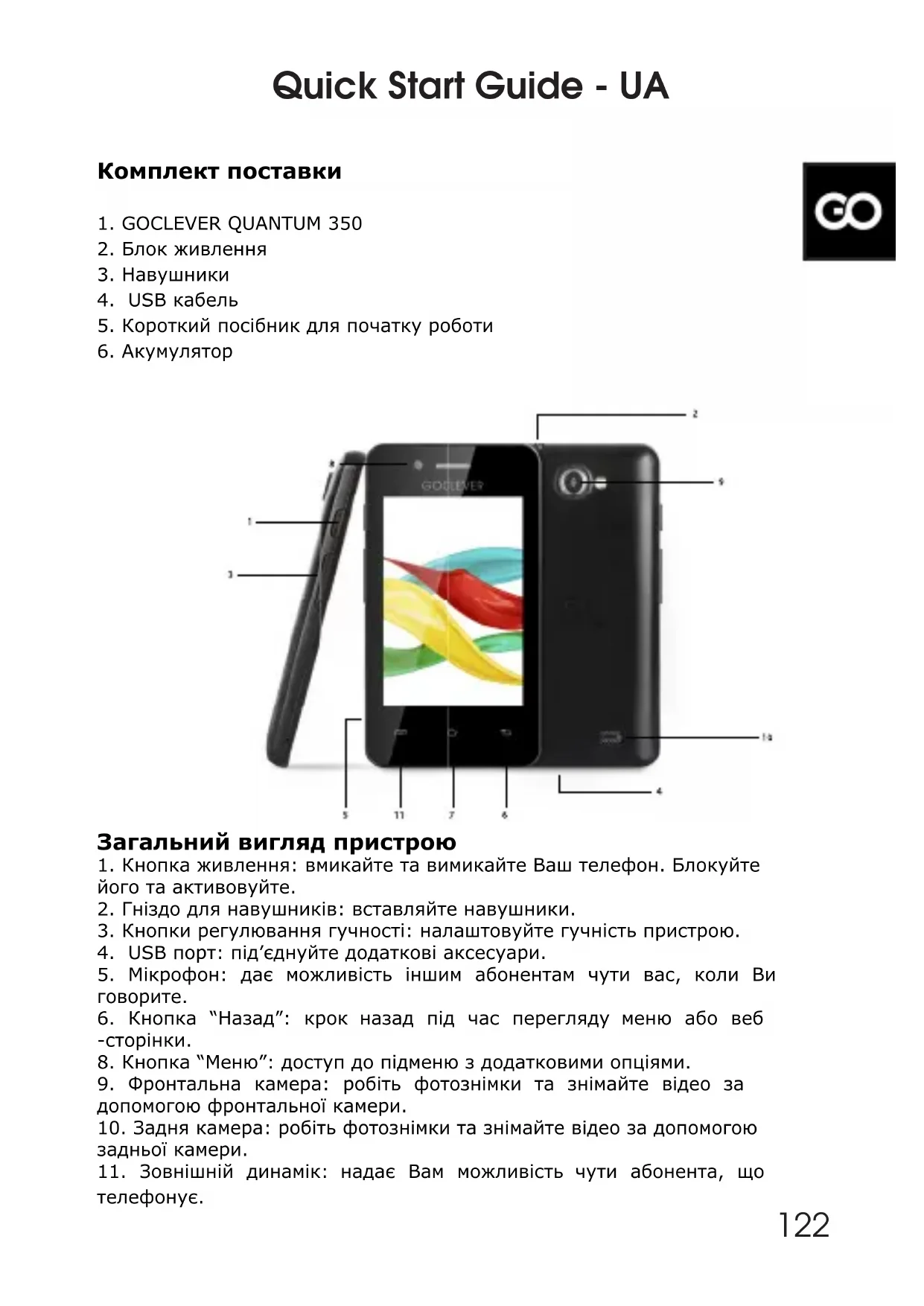 Quantum 350 - смартфон GOCLEVER - Безкоштовний посібник користувача