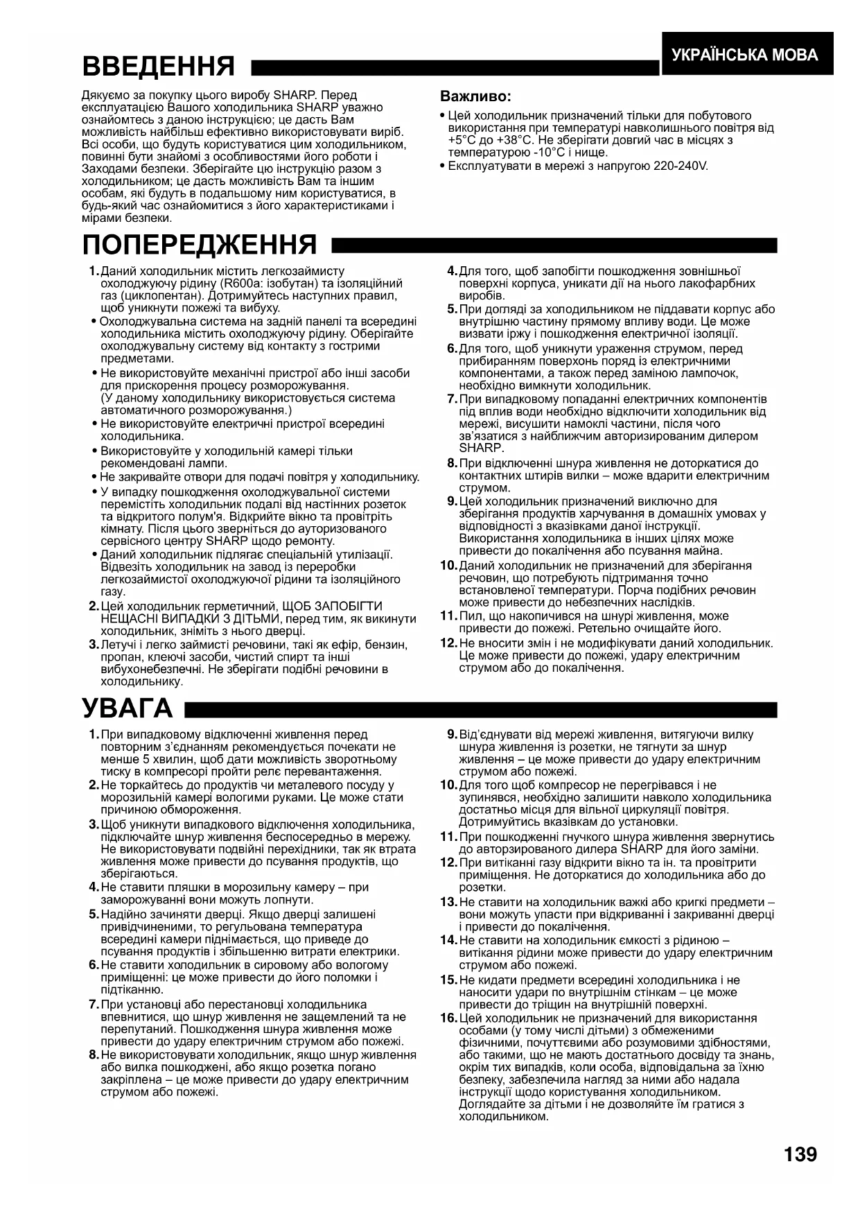 ПОСІБНИК КОРИСТУВАЧА SJF73PEBE SHARP