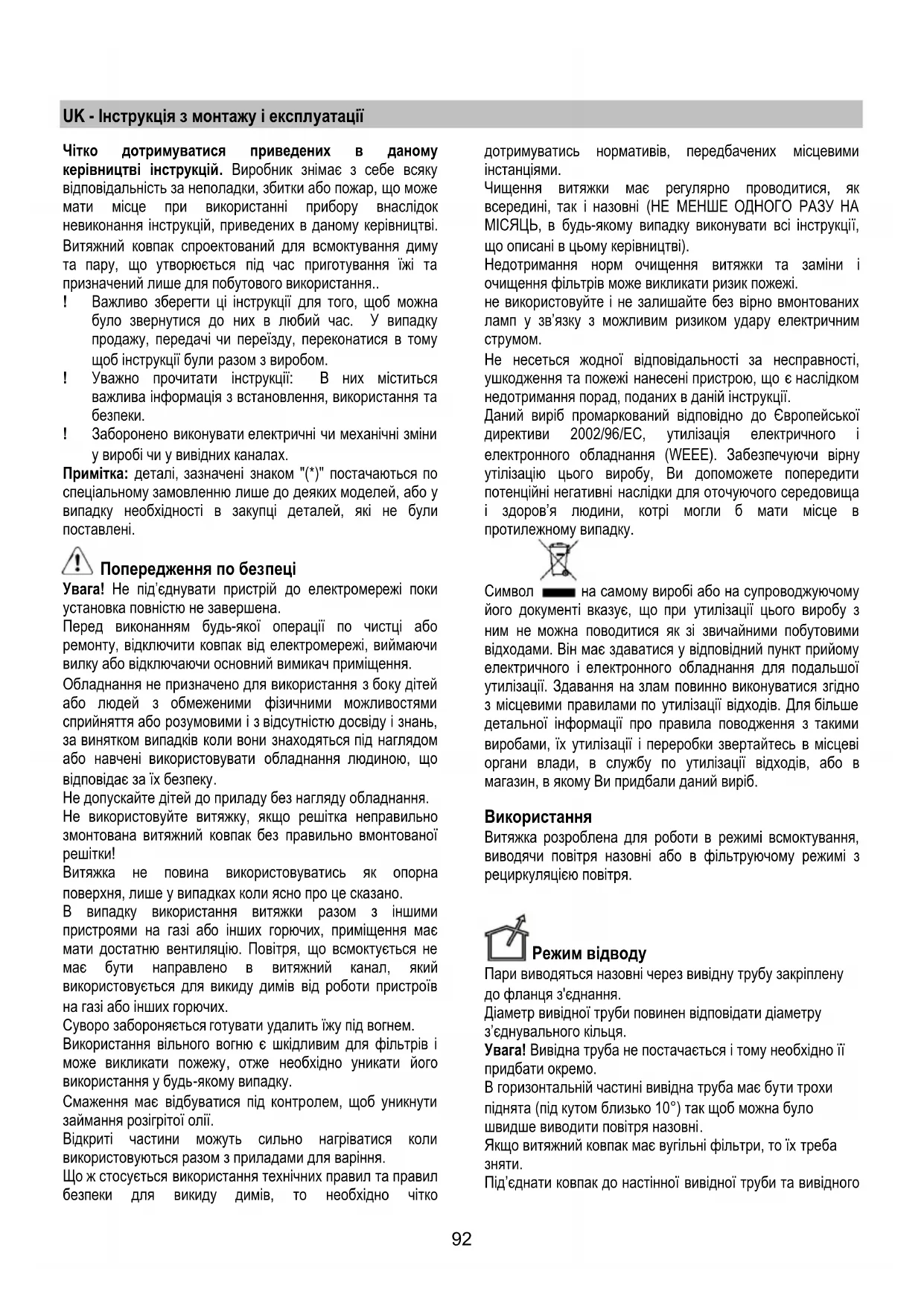 UK Інструкція з монтажу і експлуатації