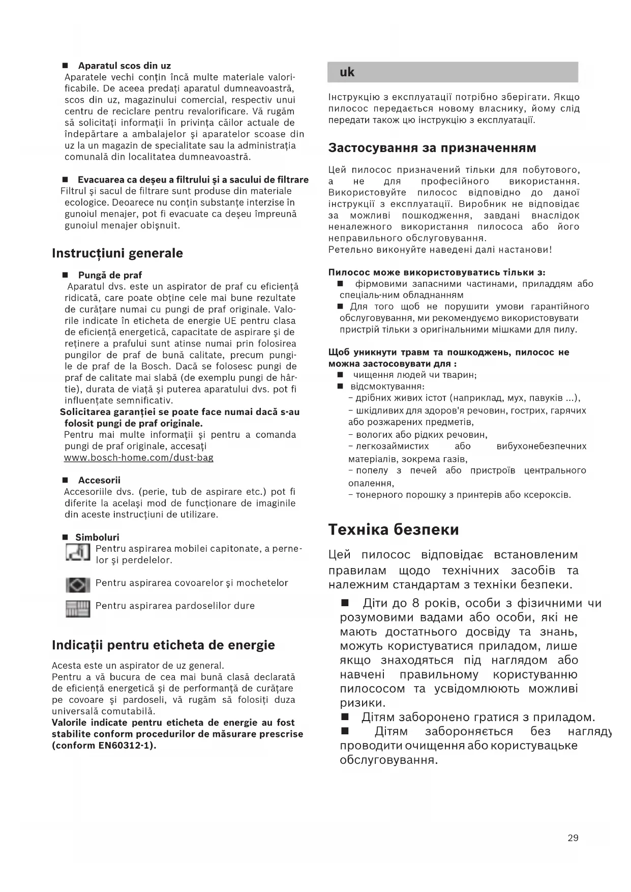 ПОСІБНИК КОРИСТУВАЧА BGL3A110 BOSCH