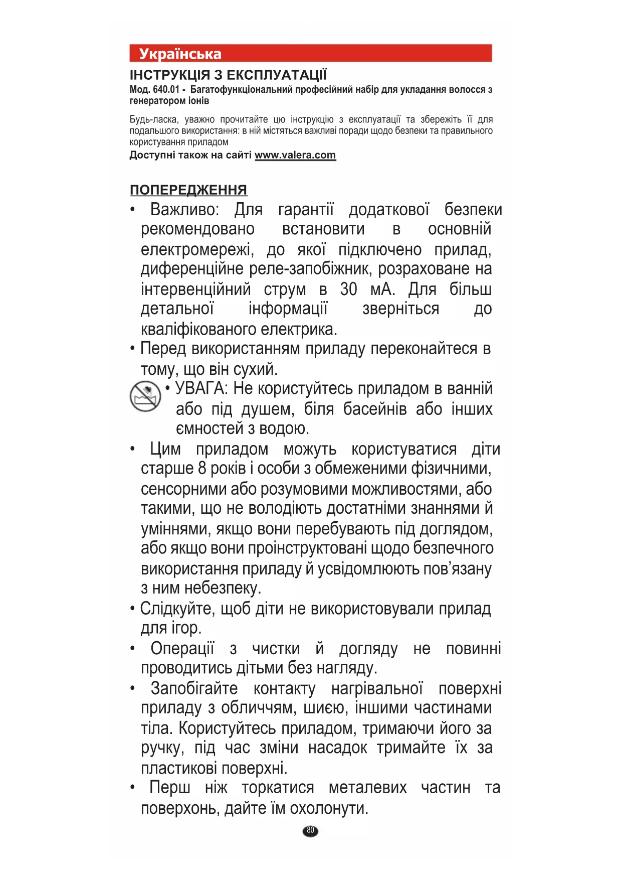 укладання волосся з генератором iонiв Переклад з оригінальних інструкцій 80