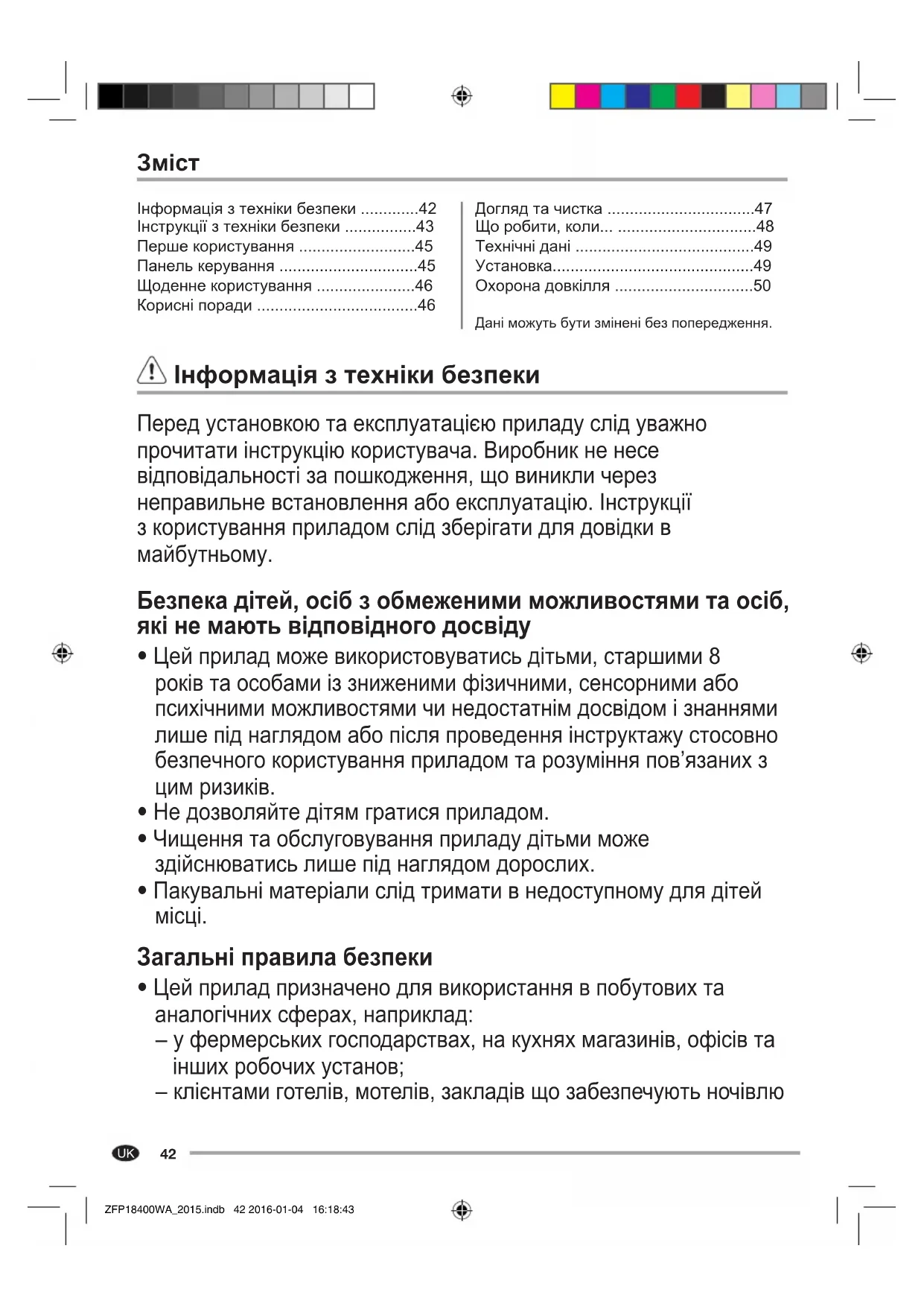 Цей прилад відповідає директивам E.E.C. ZFP18400WA_2015.indb 49 2016-01-04 16:18:4350