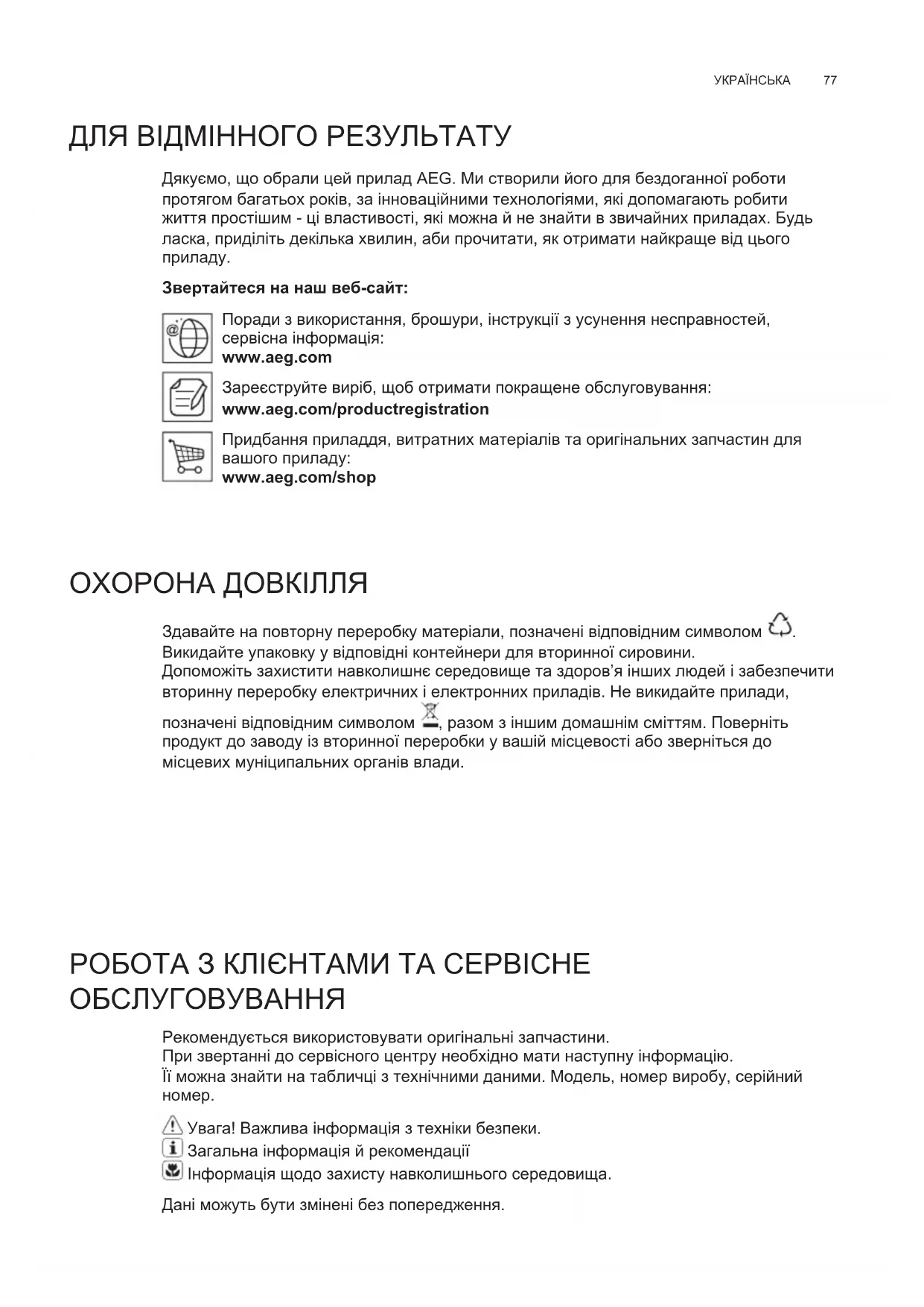 UK ІНСТРУКЦІЯ З ЕКСПЛУАТАЦІЇwww.aeg.com