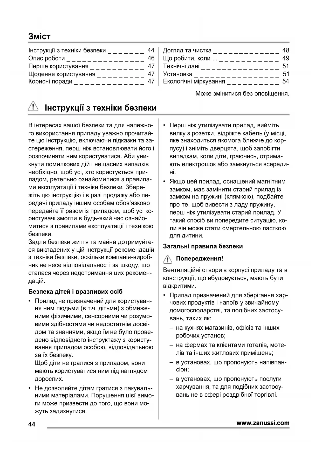 www.zanussi.comЗміст