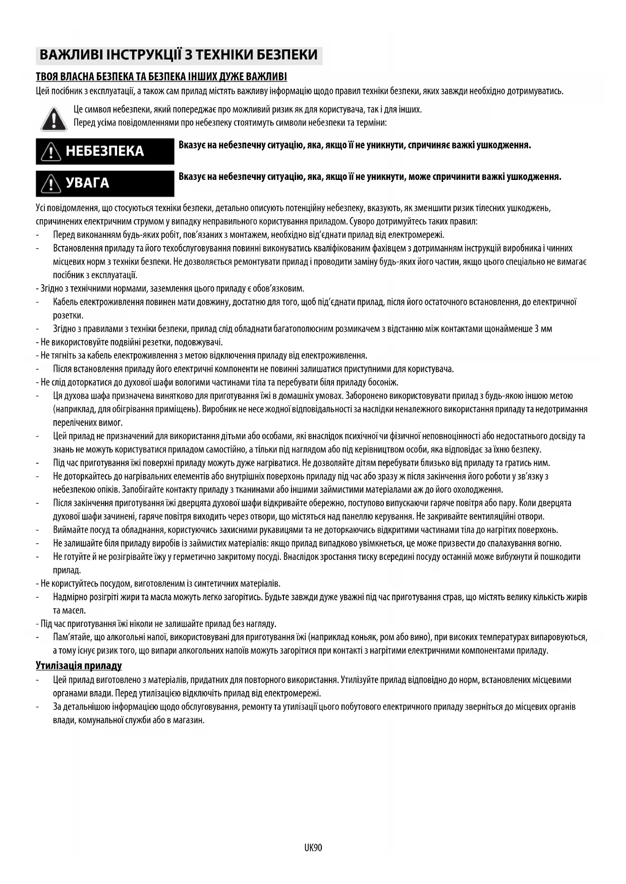 - Ця духова шафа призначена винятково для приготування їжі в домашніх умовах. Заборонено використовувати прилад з будь-якою іншою метою