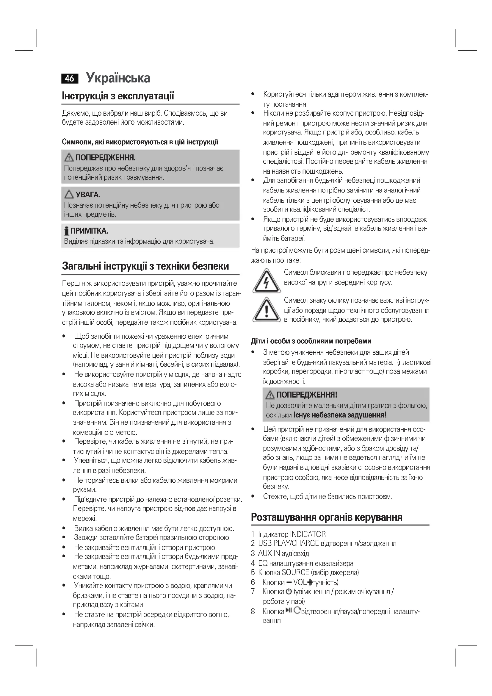 | Пристрий не працоe. | Збий в робoti пristroю, Внаслдок уго ВiH "Зави". | Ha 5 sesунд ВiД'едни�ся вд мерекі ЖИВLENHЯ,а NotIM ybi- МКніть ріnstрий знову. |