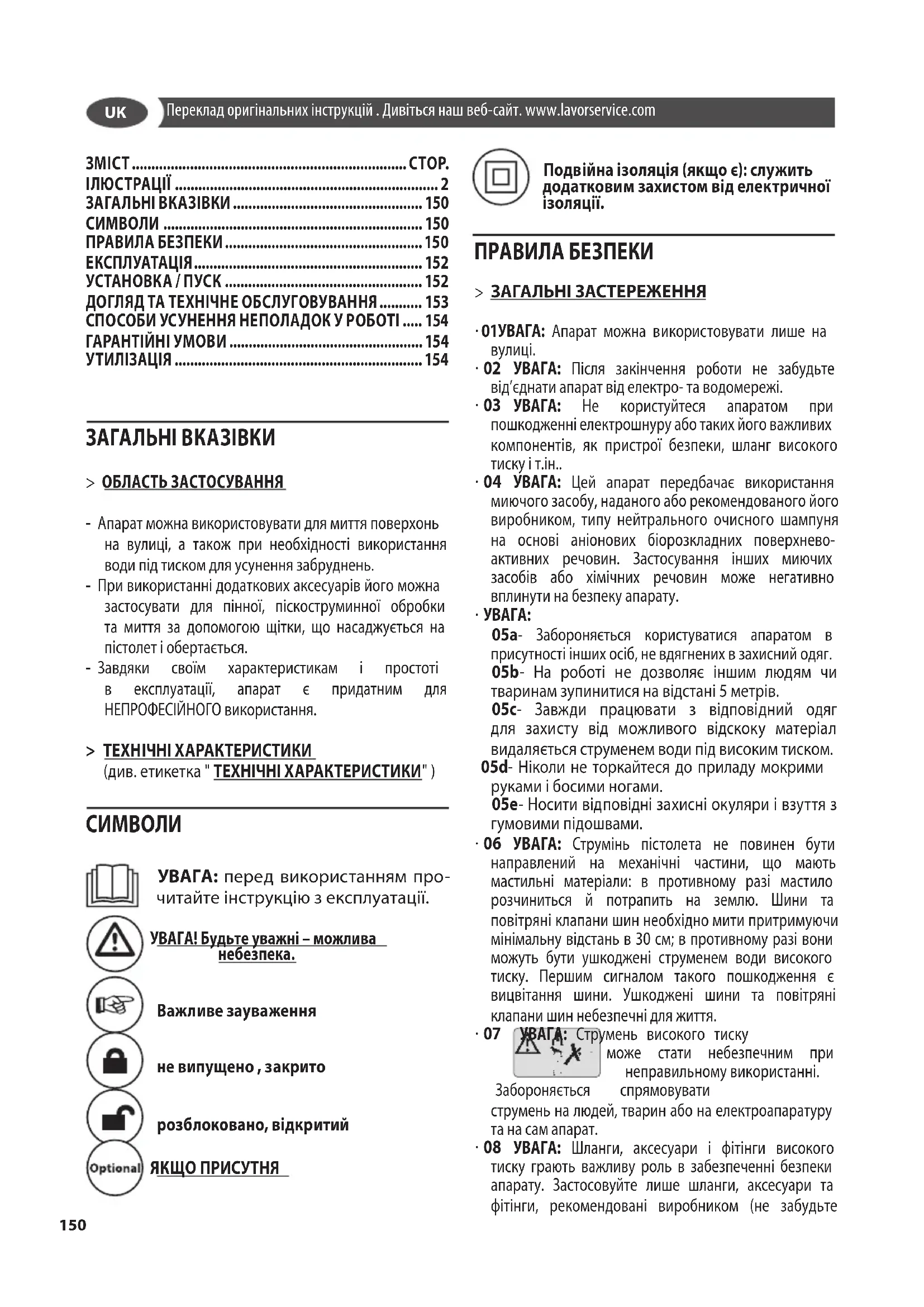 - 28 УВАГА: Під час використання очищувачів високого тиску можливе утворення аерозолів. Вдихання аерозолів може привести до виникнення небезпеки для здоров'я.