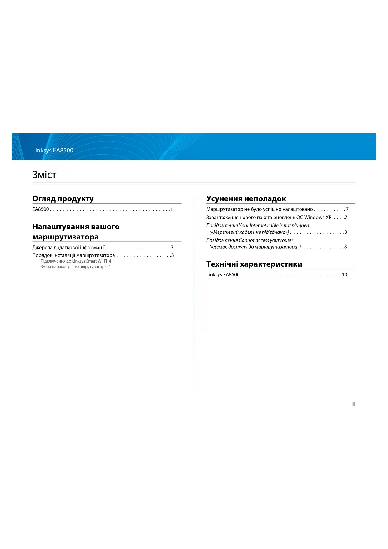 - Підключення до Linksys Smart Wi-Fi 4 Зміна параметрів маршрутизатора 4 Усунення неполадок Маршрутизатор не було успішно налаштовано p. 7