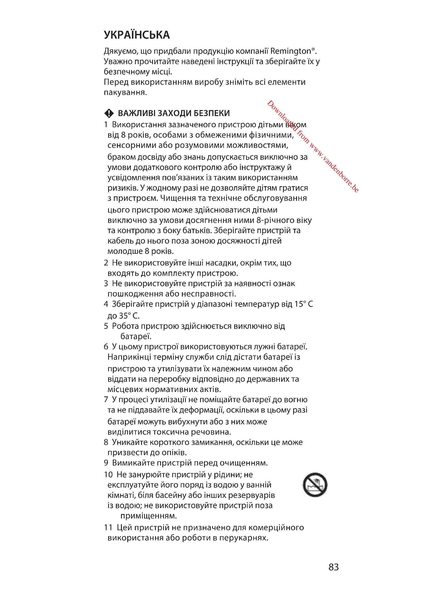 Downloaded from www.vandenborre.beДякуємо, що придбали продукцію компанії Remington®. Уважно прочитайте наведені інструкції та зберігайте їх у безпечному місці. Перед використанням виробу зніміть всі елементи