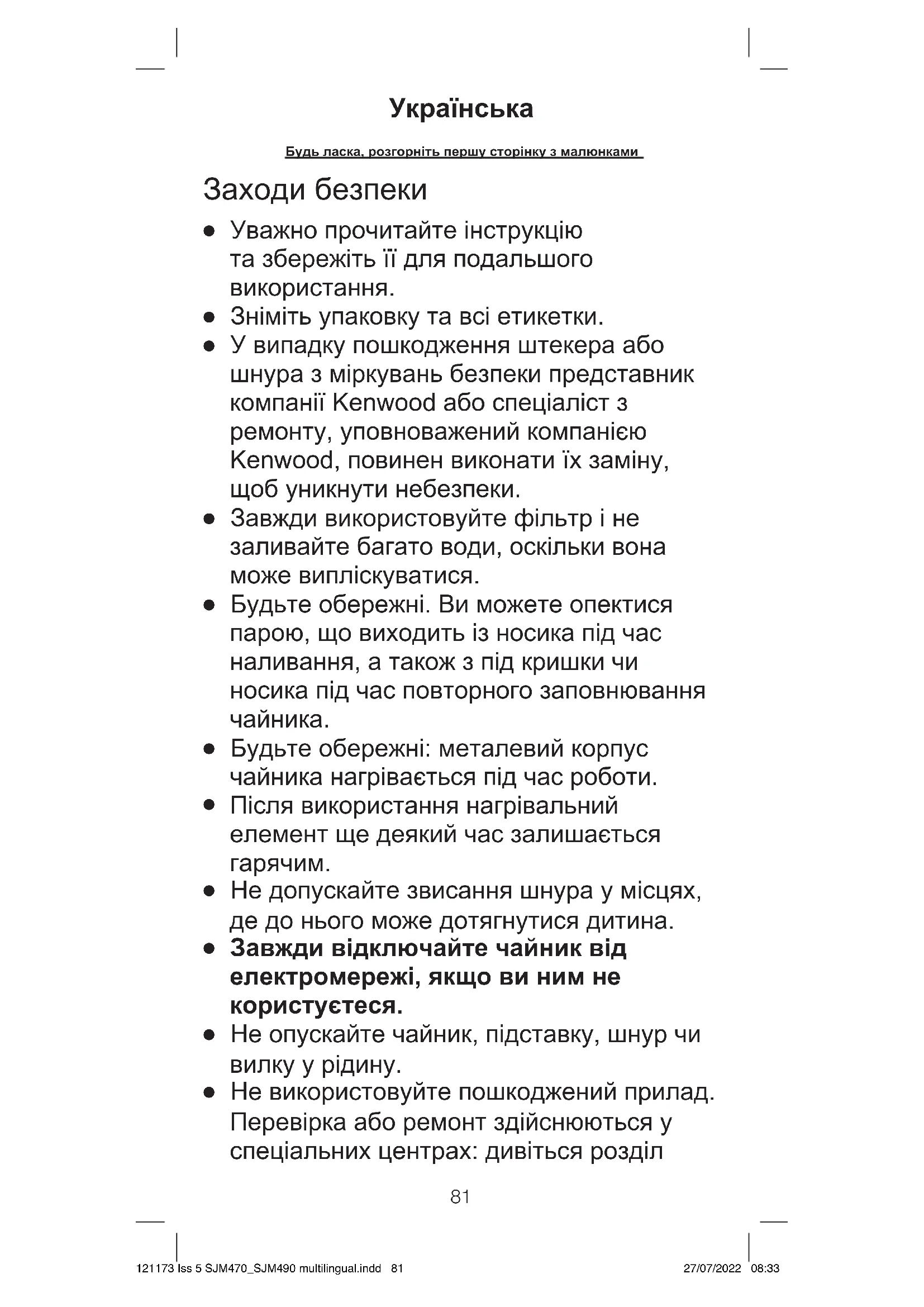 SJM490 - чайник KENWOOD - Безкоштовний посібник користувача