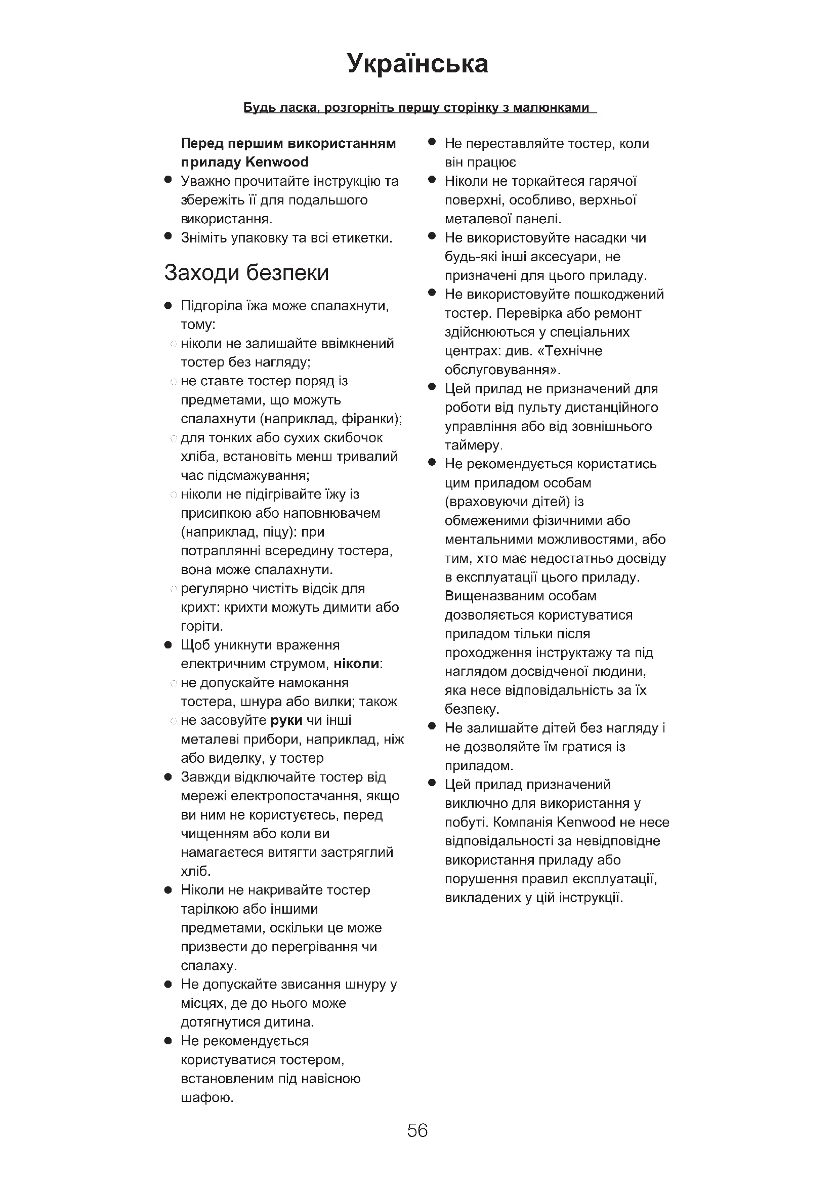 Цей прилад призначений виключно для використання у побуті. Компанія Kenwood не несе відповідальності за невідповідне використання приладу або порушення правил експлуатації, викладених у цій інструкції.