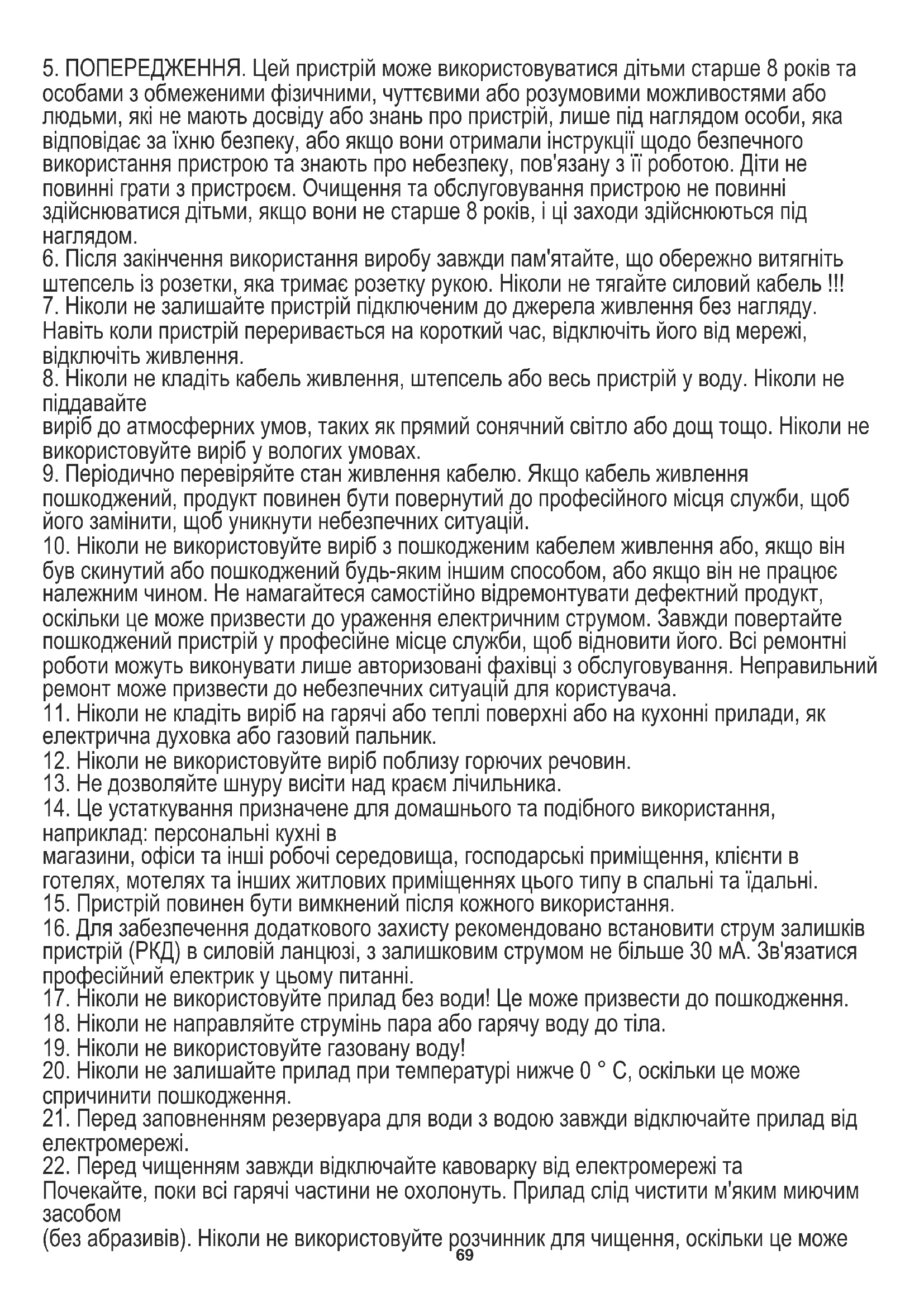 REMARQUE: Avant de nettoer l'appareil il faut debranchez la cafetiere du reseau et attendre son refroidissement complet.