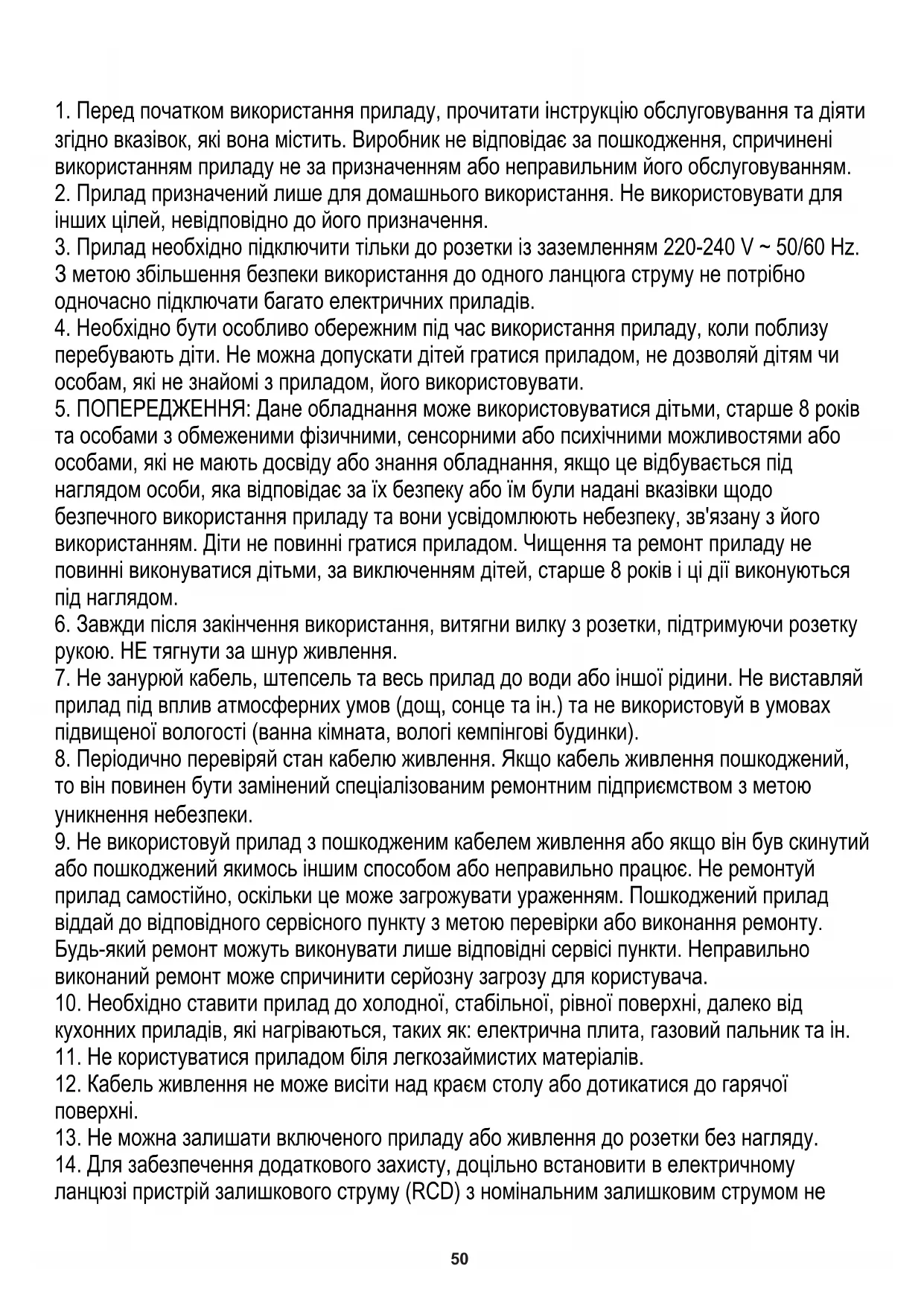 3. Прилад необхідно підключити тільки до розетки із заземленням 220-240 V ~ 50/60 Hz.