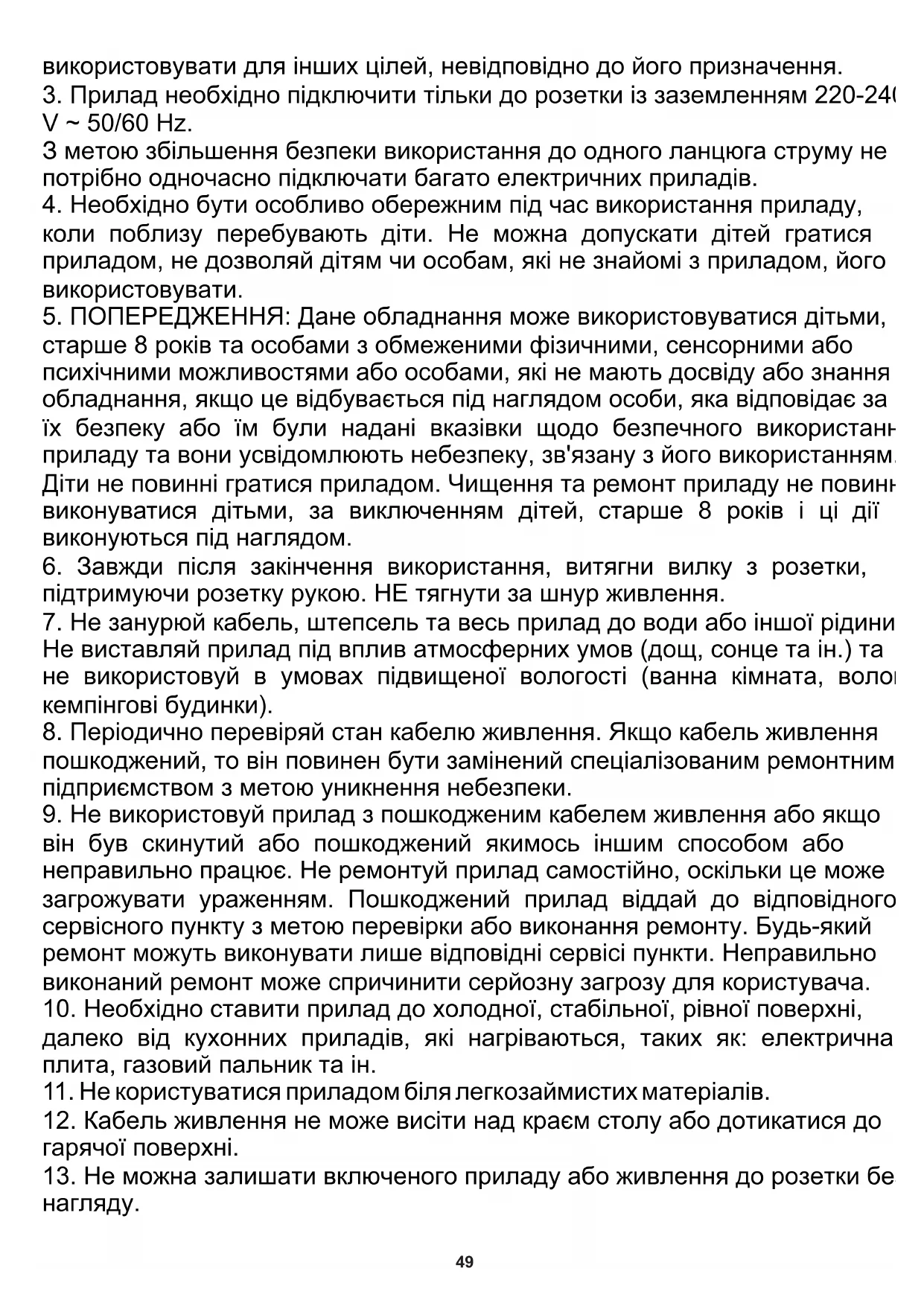 11. Не користуватися приладом біля легкозаймистих матеріалів.50