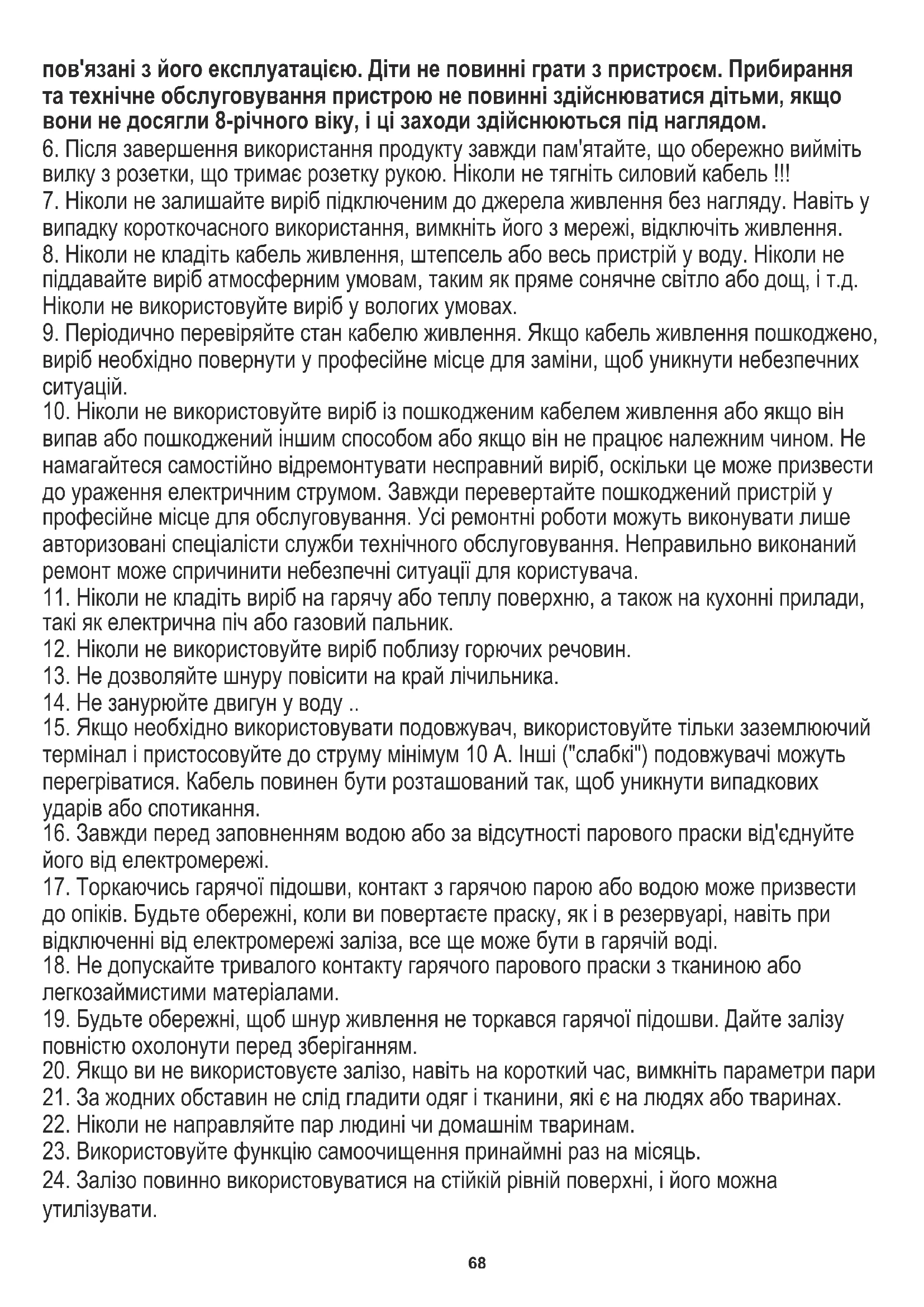22. Ніколи не направляйте пар людині чи домашнім тваринам.