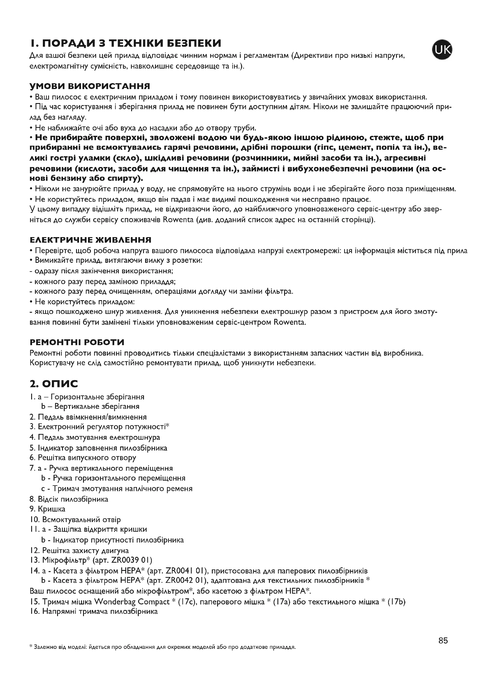 - Перед закриттям кришки (9) перевірте правильність встановлення касети з фільтром HEPA* (14a). ОЧИЩЕННЯ КАСЕТИ З ФІЛЬТРОМ HEPA* (арт. ZR0042 01) Увага! Таке очищення можна проводити тільки для касети з фільтром HEPA* арт. ZR0042 01.