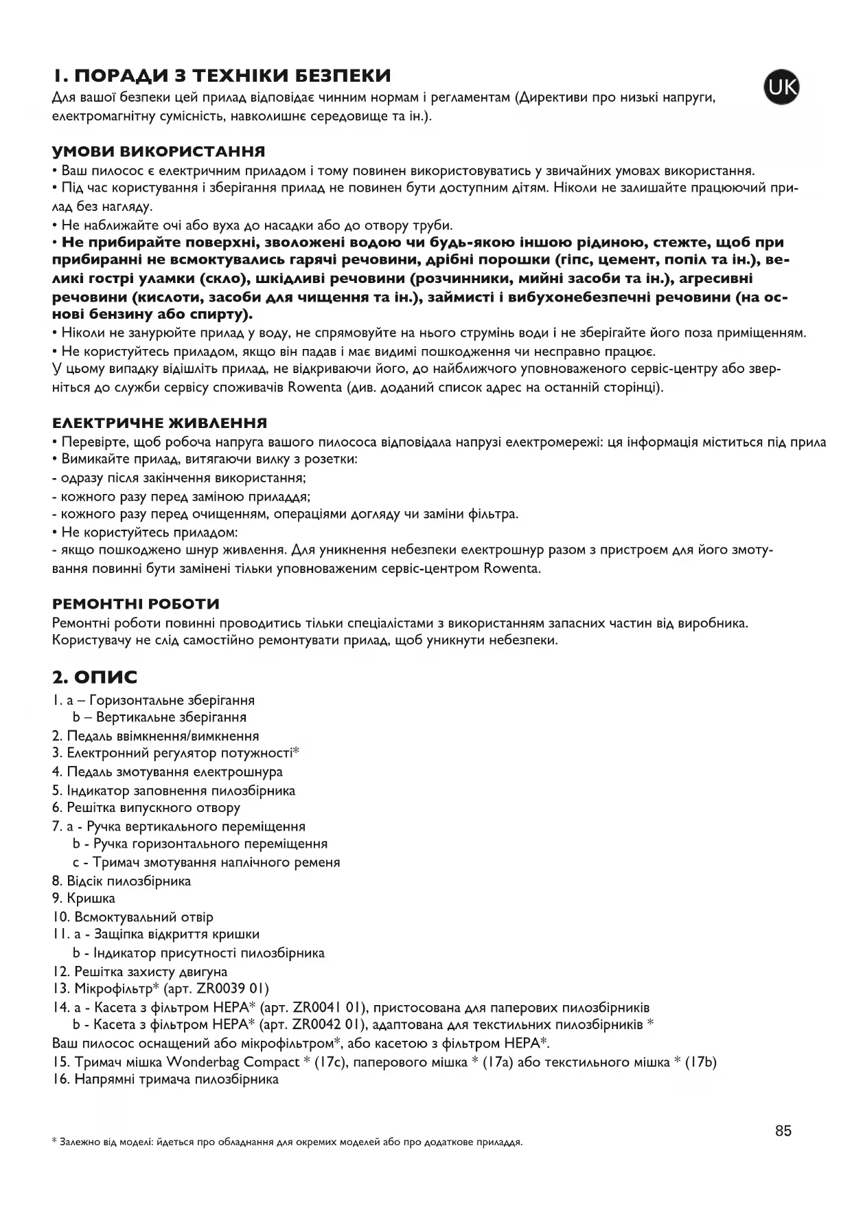 - У випадку труднощів із придбанням приладдя і фільтрів для цього пилососа, зверніться до служби сервісу спожива- чів Rowenta (див. доданий список адрес на останній сторінці).