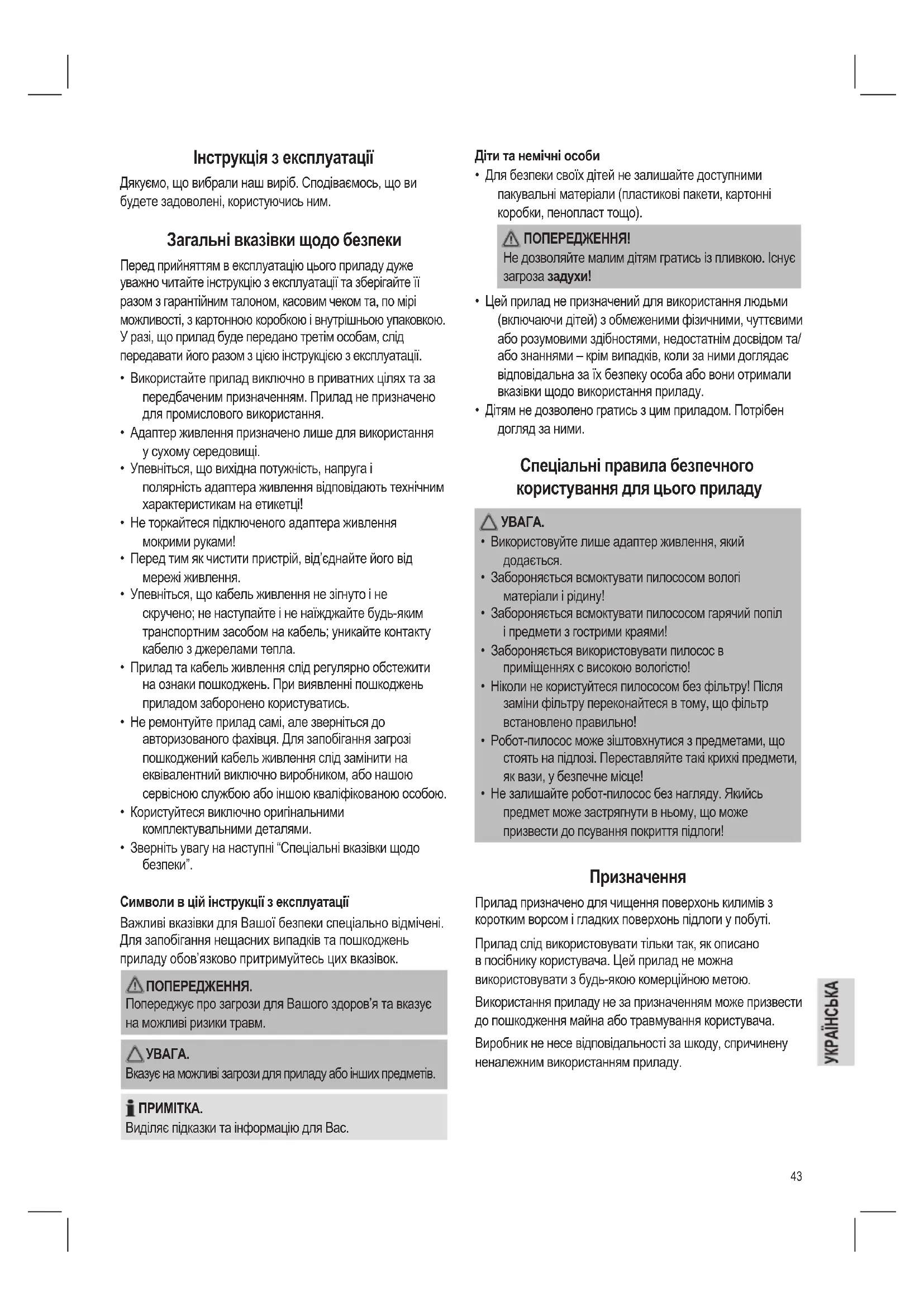 Elviheti az akkumulátorokat egy akkumulátor vagy speciális hulladék gyűjtőpontra. Információért lépjen kapcsolatba a helyi hatóságokkal.43 Інструкція з експлуатації Дякуємо, що вибрали наш виріб. Сподіваємось, що ви будете задоволені, користуючись ним. Загальні вказівки щодо безпеки Перед прийняттям в експлуатацію цього приладу дуже уважно читайте інструкцію з експлуатації та зберігайте її разом з гарантійним талоном, касовим чеком та, по мірі можливості, з картонною коробкою і внутрішньою упаковкою. У разі, що прилад буде передано третім особам, слід передавати його разом з цією інструкцією з експлуатації.
