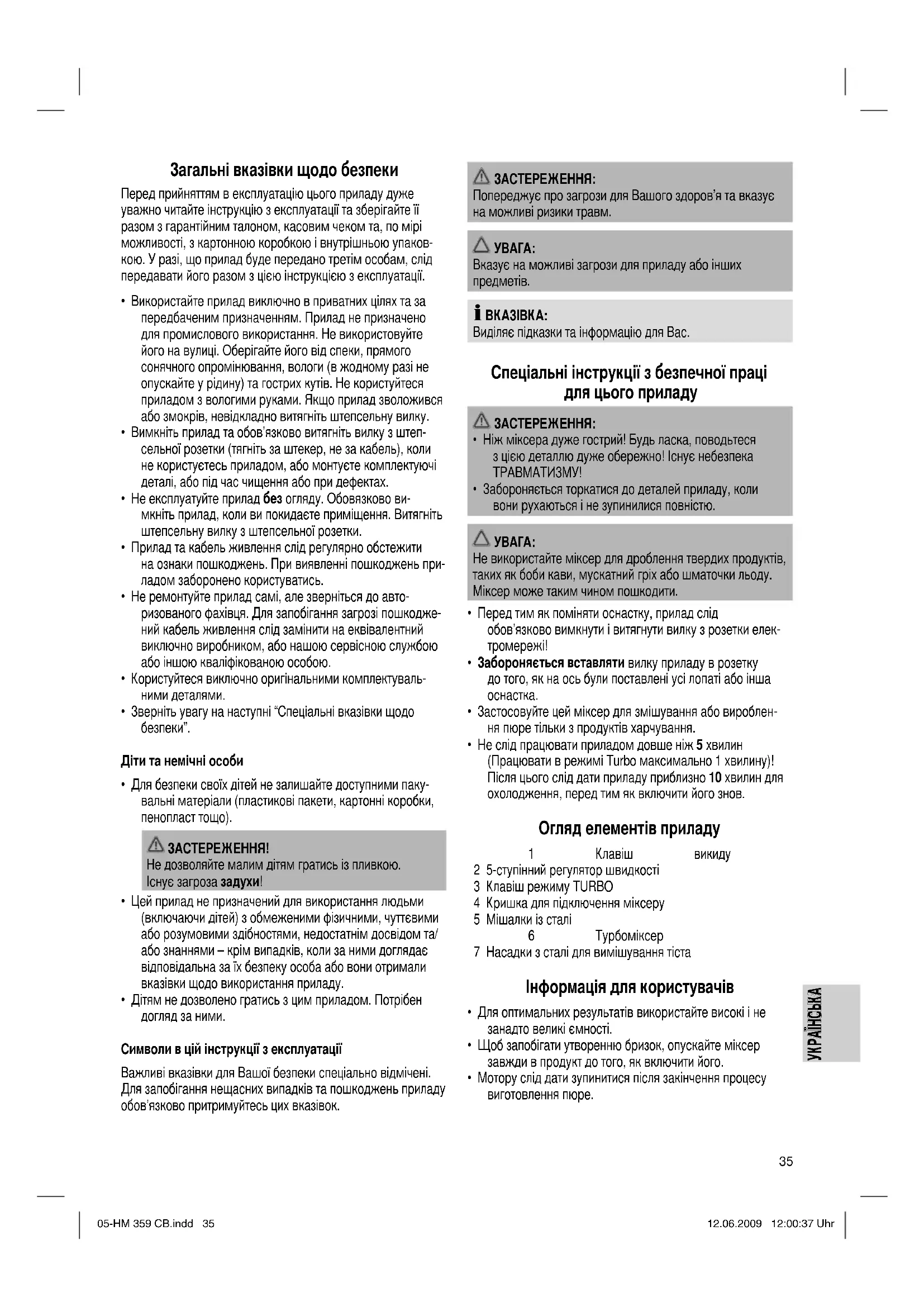 - Мотору слід дати зупинитися після закінчення процесу виготовлення пюре. 05-HM 359 CB.indd 3505-HM 359 CB.indd 35 12.06.2009 12:00:37 Uhr12.06.2009 12:00:37 Uhr36