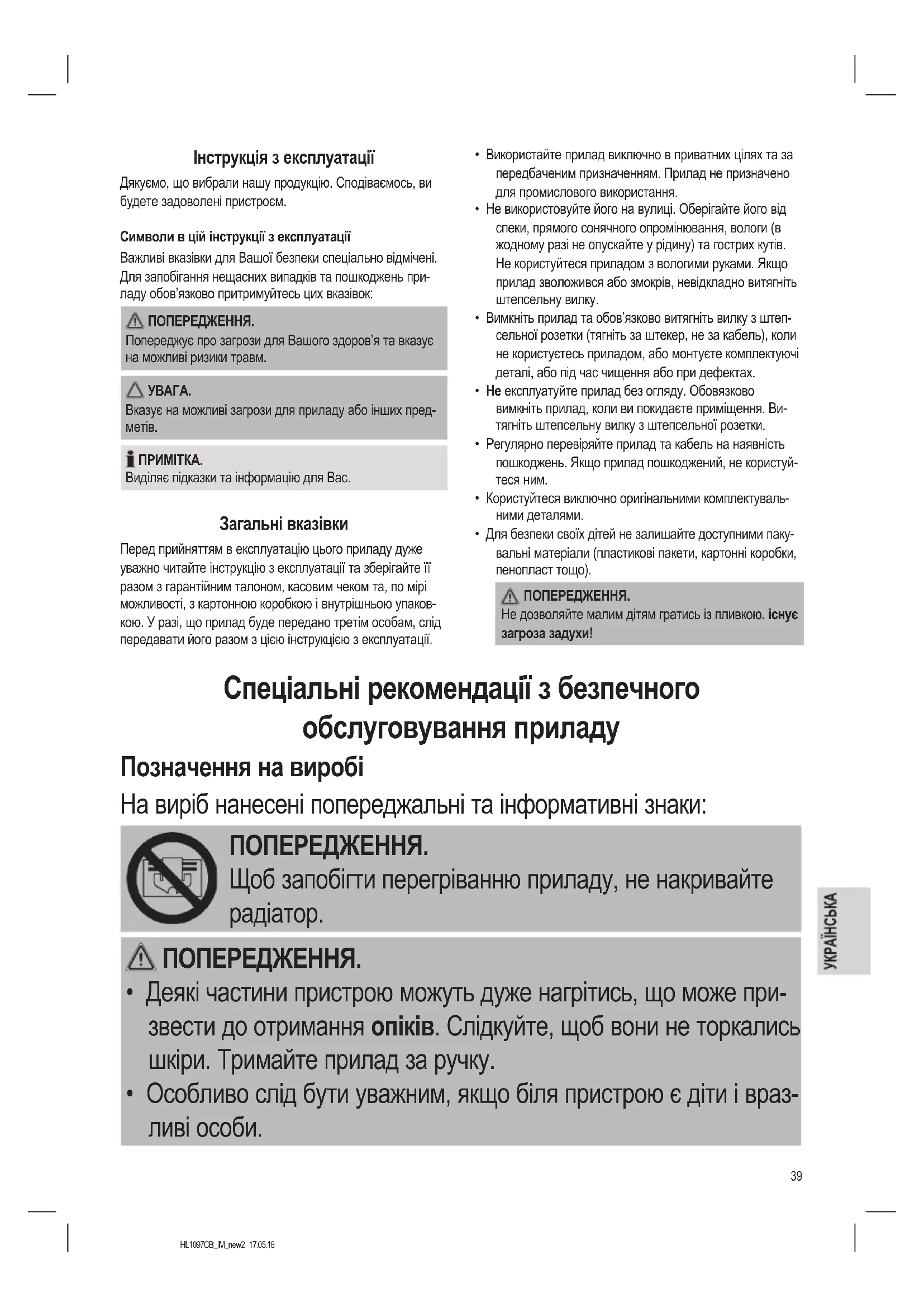 - Особливо слід бути уважним, якщо біля пристрою є діти і враз- ливі особи.40 HL1097CB_IM_new2 17.05.18