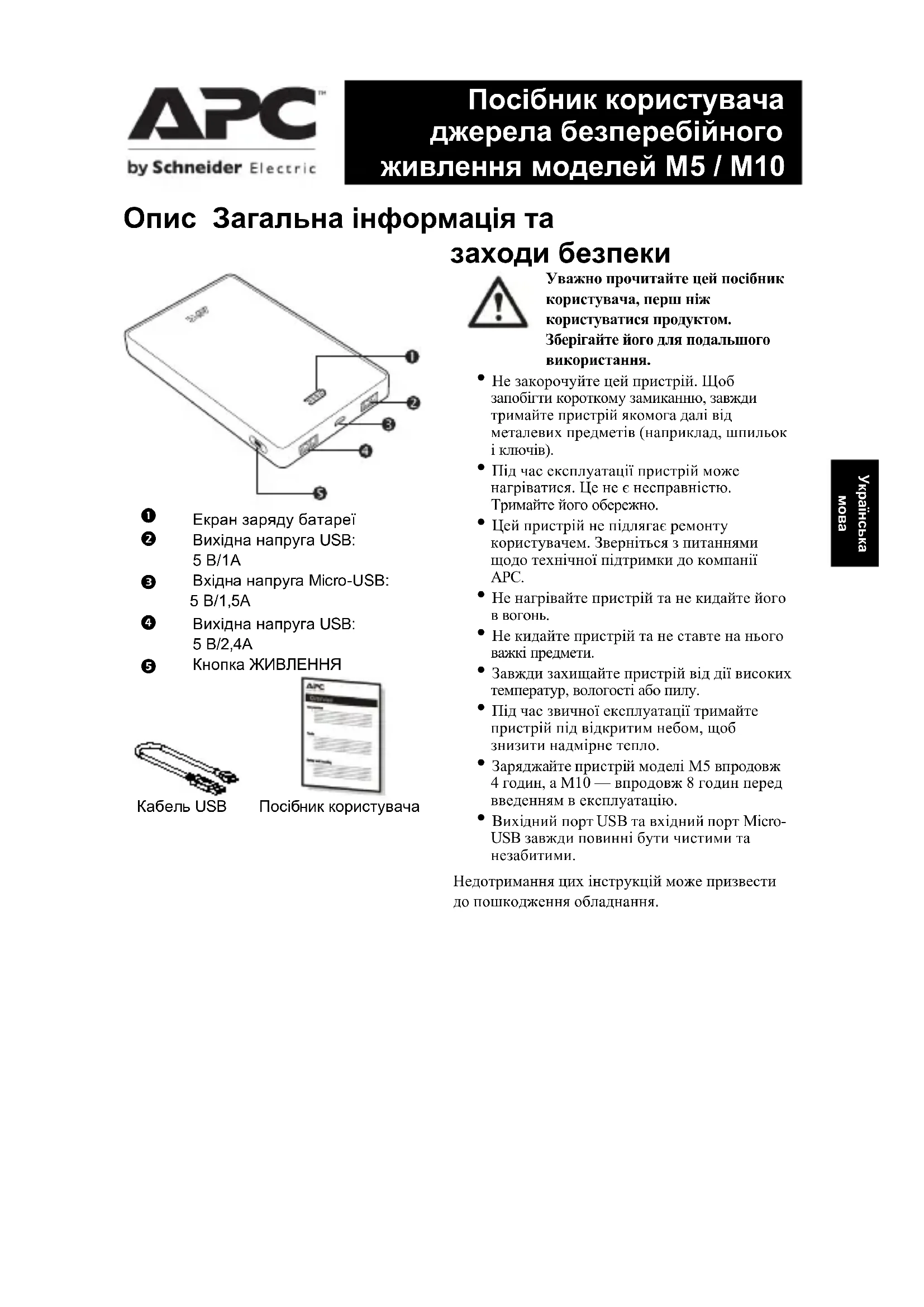ПОСІБНИК КОРИСТУВАЧА Power Pack M5 APC