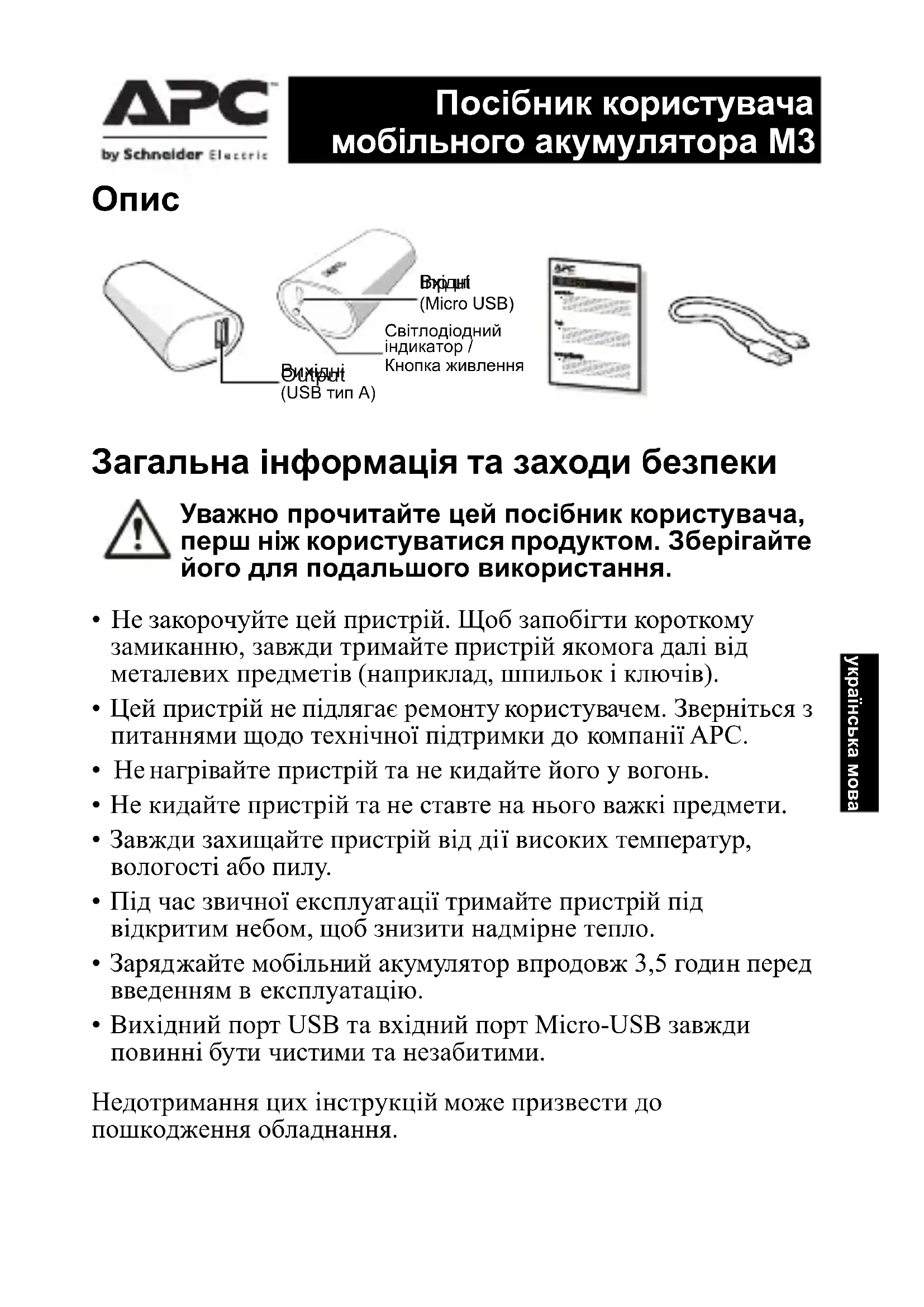 M3BL - Портативний акумулятор APC - Безкоштовний посібник користувача