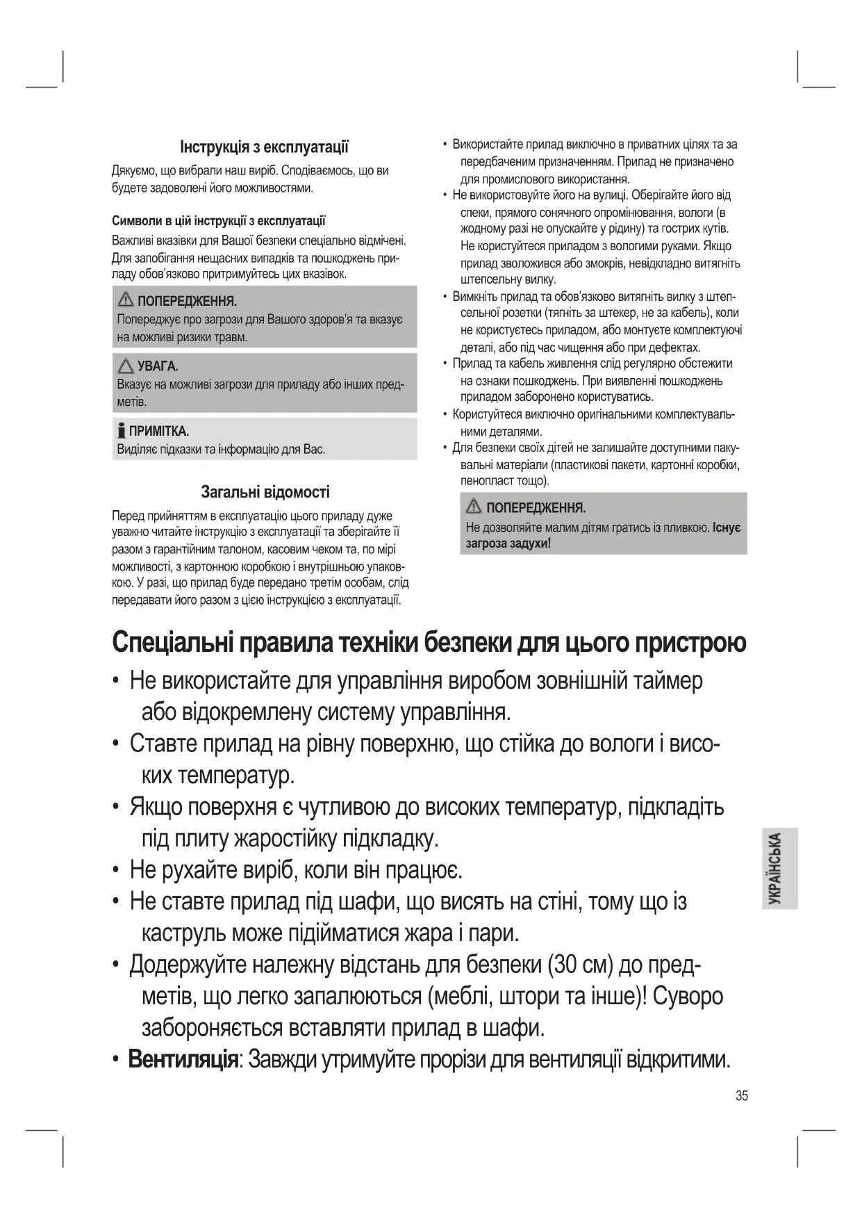 Виділяє підказки та інформацію для Вас. Загальні відомості Перед прийняттям в експлуатацію цього приладу дуже уважно читайте інструкцію з експлуатації та зберігайте її разом з гарантійним талоном, касовим чеком та, по мірі можливості, з картонною коробкою і внутрішньою упаков- кою. У разі, що прилад буде передано третім особам, слід передавати його разом з цією інструкцією з експлуатації.