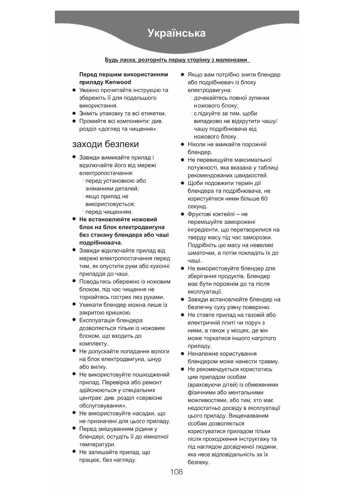 Експлуатація блендера дозволяється тільки із ножовим блоком, що входить до