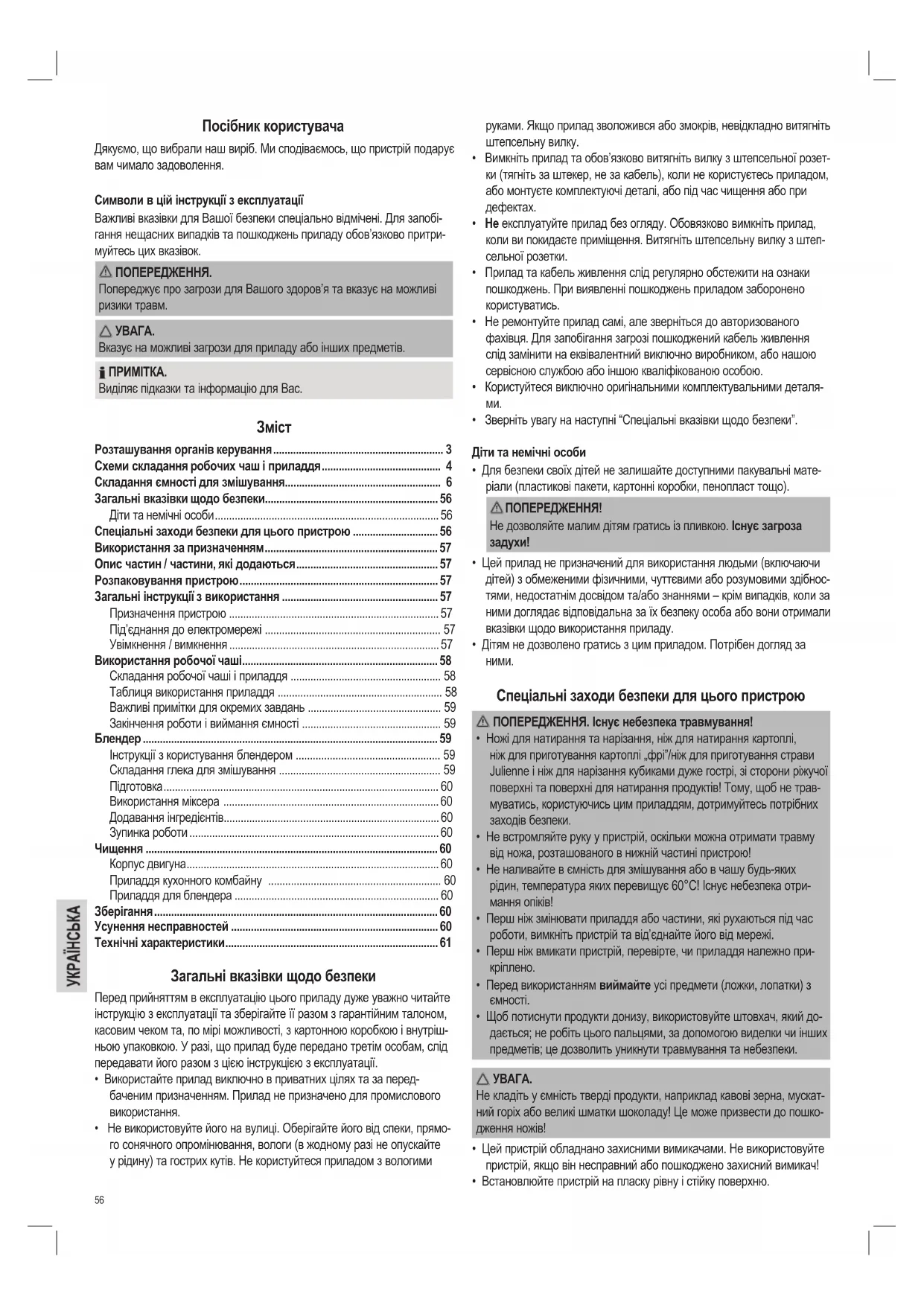 - Інструкції з користування блендером p. 59