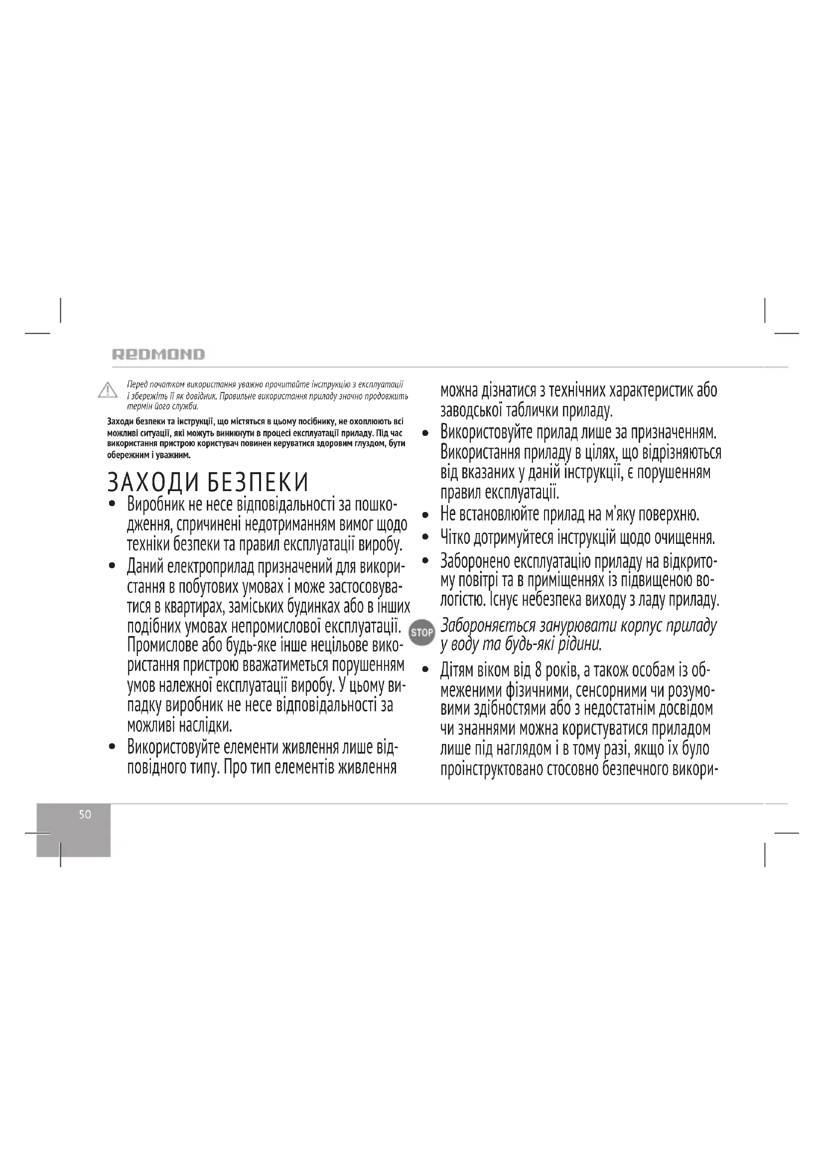 ПОСІБНИК КОРИСТУВАЧА RS724E Redmond