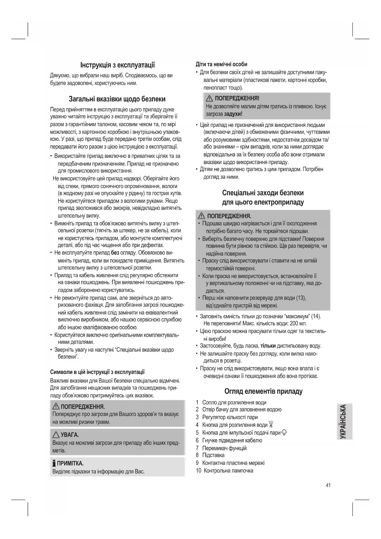 - Дітям не дозволено гратись з цим приладом. Потрібен догляд за ними.