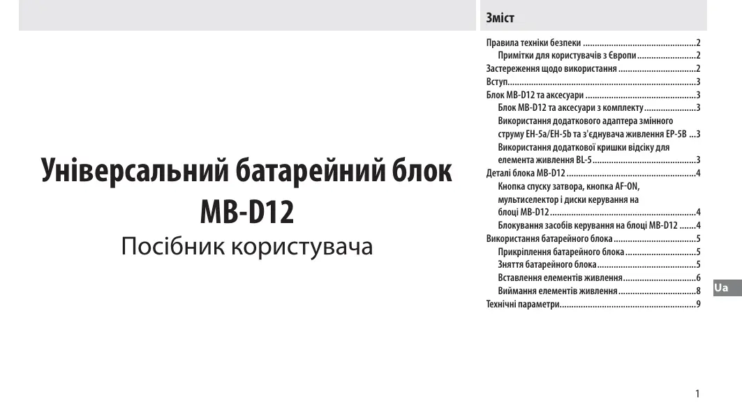 ПОСІБНИК КОРИСТУВАЧА MB-12 NIKON
