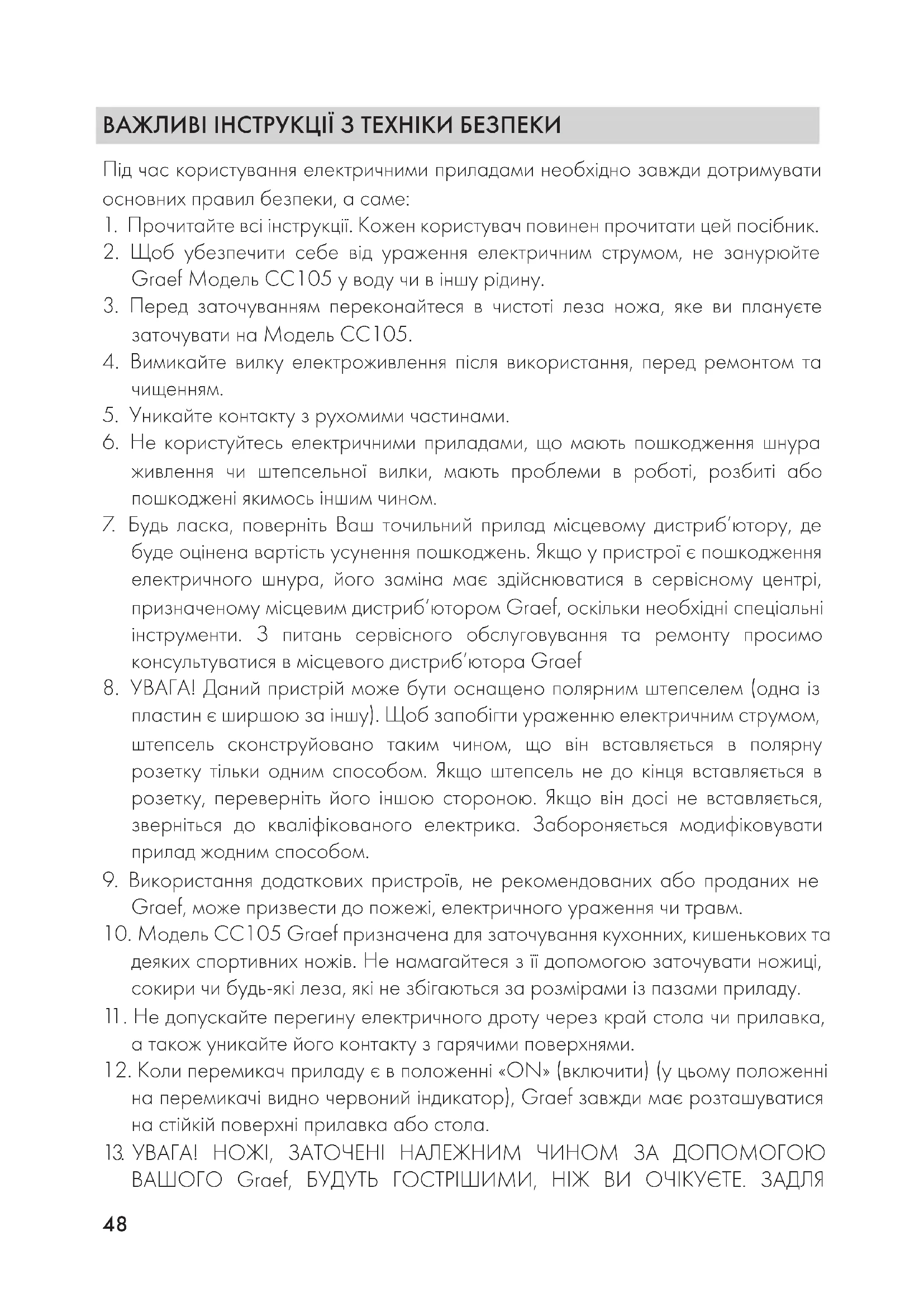 ПОСІБНИК КОРИСТУВАЧА Chef's Choice CC 105 GRAEF