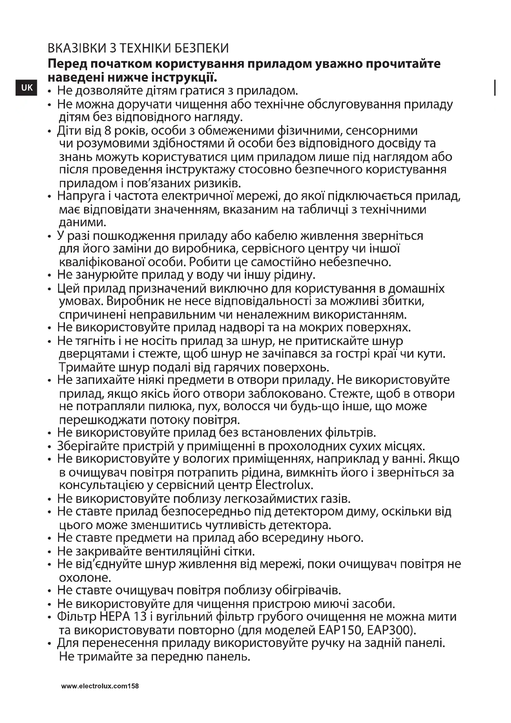 ПОСІБНИК КОРИСТУВАЧА EAP150 ELECTROLUX