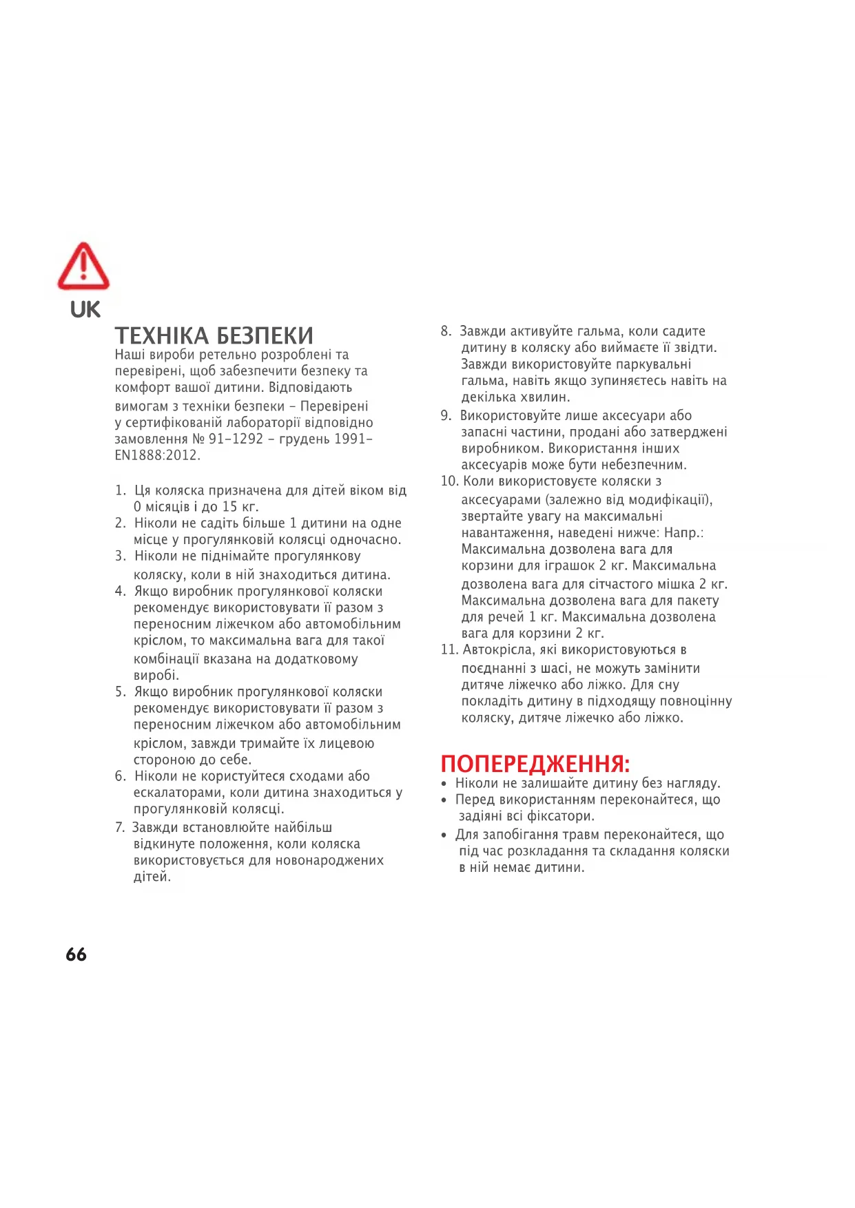 - Для запобігання травм переконайтеся, що під час розкладання та складання коляски в ній немає дитини. UK67