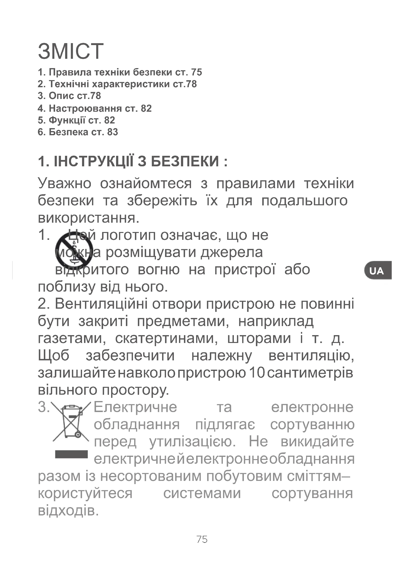 обладнання підлягає сортуванню перед утилізацією. Не викидайте електричне й електронне обладнання разом із несортованим побутовим сміттям– користуйтеся системами сортування відходів.76