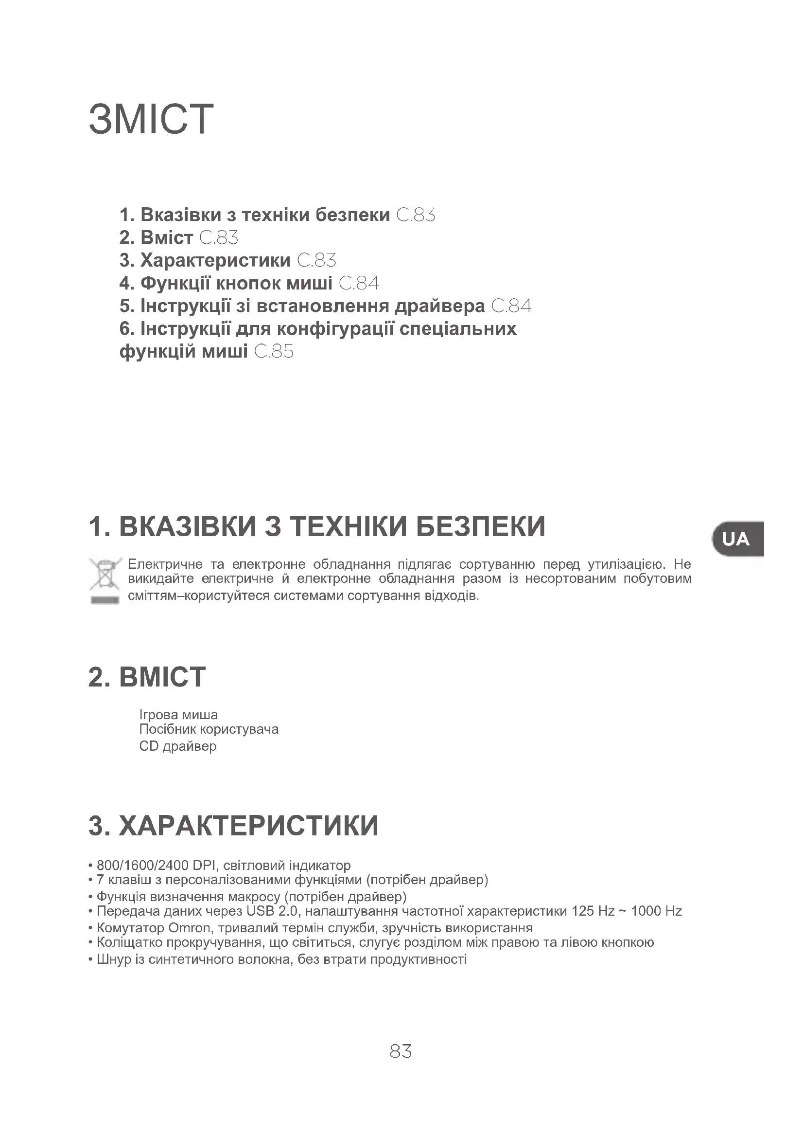 - Шнур із синтетичного волокна, без втрати продуктивності Ігрова миша Посібник користувача CD драйвер