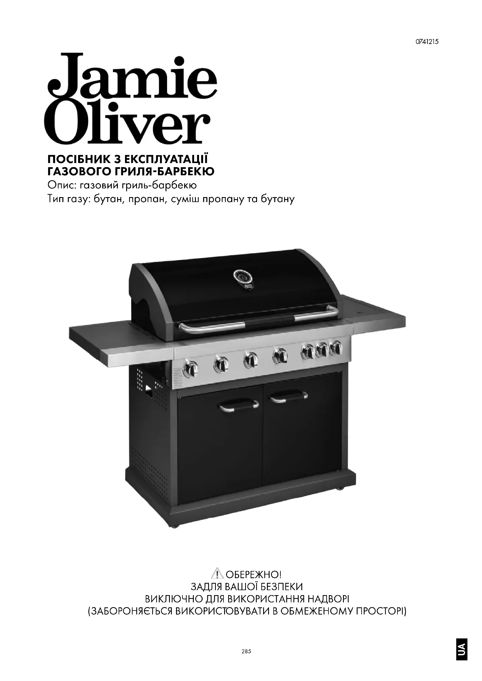 Уважно прочитайте ці інструкції та переконайтеся в тому, що ваше барбекю встановлено та зібрано належним чином й обслуговується та використовується згідно з цими інструкціями. Недотримання цих вимог може призвести до важкої травми або матеріальних збитків. Щодо питань, пов’язаних зі збіркою або експлуатацією цього барбекю, звертайтеся до свого дилера, постачальника газу, виробника, агента або до розділу Support (Підтримка) на сайті www.jamieoliverbbq.com. Примітки для користувача «ВИКОРИСТОВУВАТИ ЛИШЕ НАДВОРІ». «ПЕРЕД ВИКОРИСТАННЯМ БАРБЕКЮ ПРОЧИТАЙТЕ ЦІ ІНСТРУКЦІЇ». «ОБЕРЕЖНО! ВІДКРИТІ ЧАСТИНИ МОЖУТЬ СИЛЬНО НАГРІВАТИСЯ. БЕРЕГТИ ВІД ДІТЕЙ». «ЗАБОРОНЯЄТЬСЯ ПЕРЕСУВА