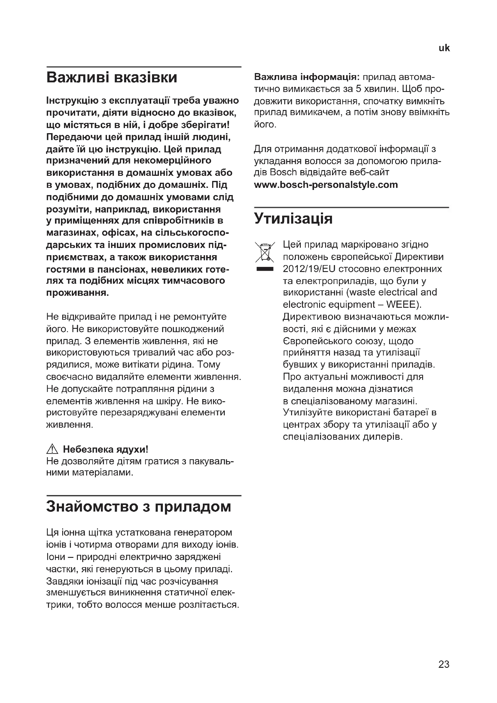 Для отримання додаткової інформації з укладання волосся за допомогою прила- дів Bosch відвідайте вебсайт www.bosch-personalstyle.com