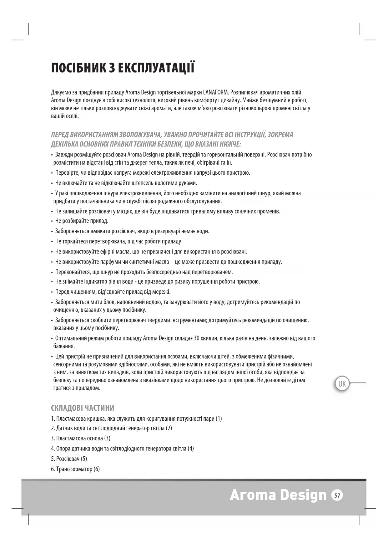 ПОСІБНИК КОРИСТУВАЧА Aroma Design LANAFORM