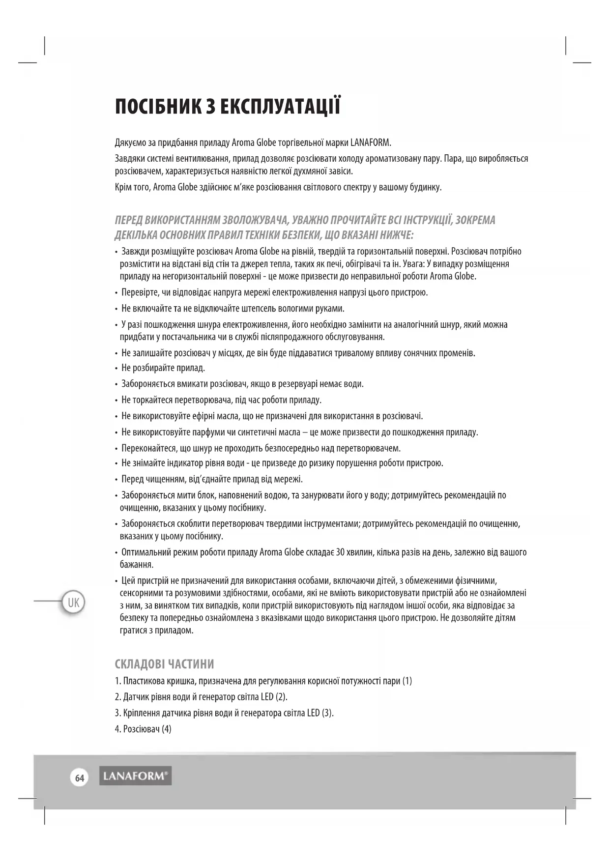 ПОСІБНИК КОРИСТУВАЧА Aroma Globe LANAFORM