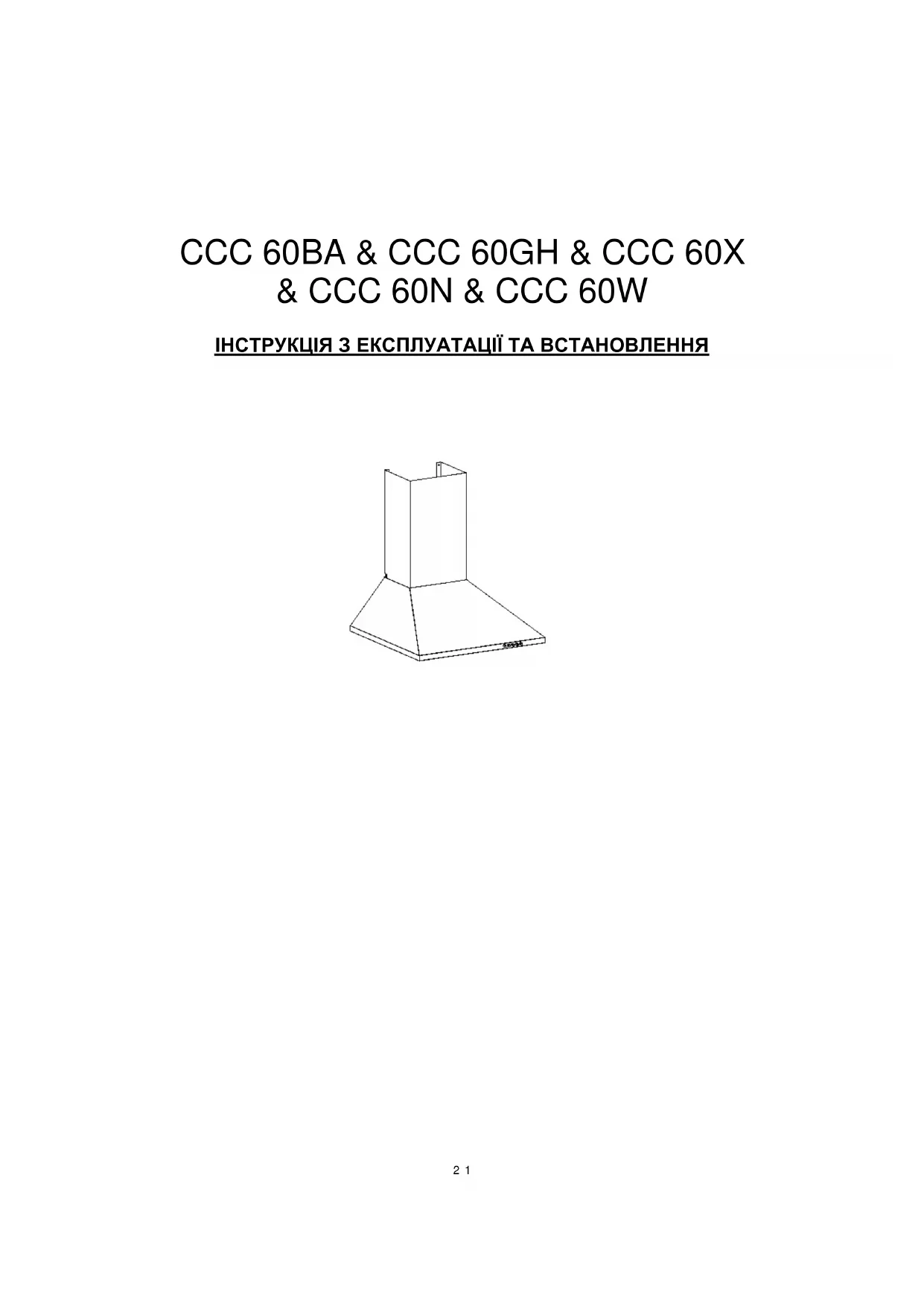 217ВСТУП Дякуємо за те, що ви обрали дану кухонну витяжку. Дана інструкція з експлуатації призначена для того, щоб надати вам усі необхідні вказівки щодо встановлення, експлуатації та технічного обслуговування цього пристрою. Для правильної та безпечної роботи пристрою уважно прочитайте дану інструкцію перед його встановленням та використанням. Важливо! Завжди вимикайте електроживлення в мережі під час встановлення та технічного обслуговування, наприклад, під час заміни лампи. ЗАПОБІЖНІ ЗАХОДИ Встановлювати витяжку потрібно відповідно до інструкцій із встановлення та з дотриманням усіх