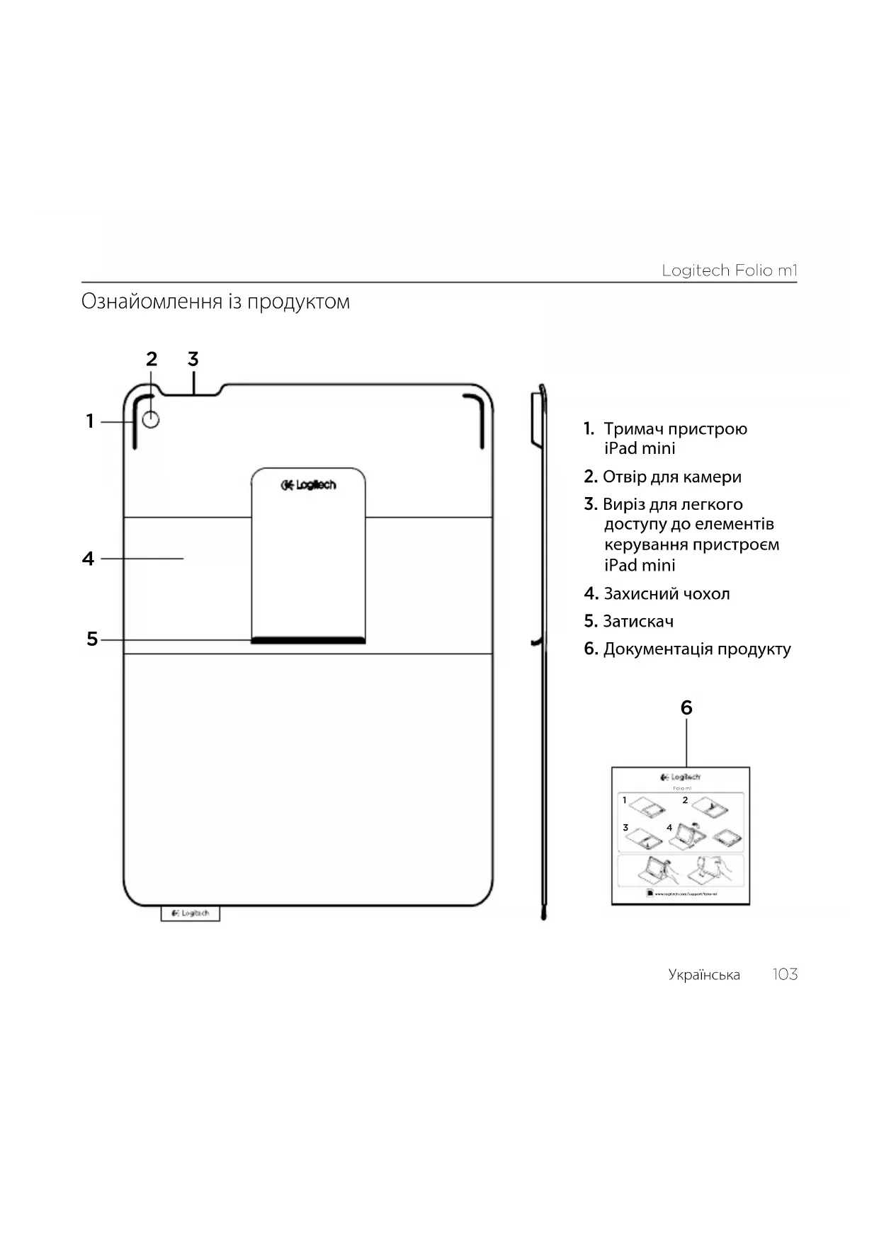 Folio m1www.logitech.com/support/folio-m1Logitech Folio m1 104 Українська Налаштування та використання чохла із пристроєм iPadmini Налаштування чохла
