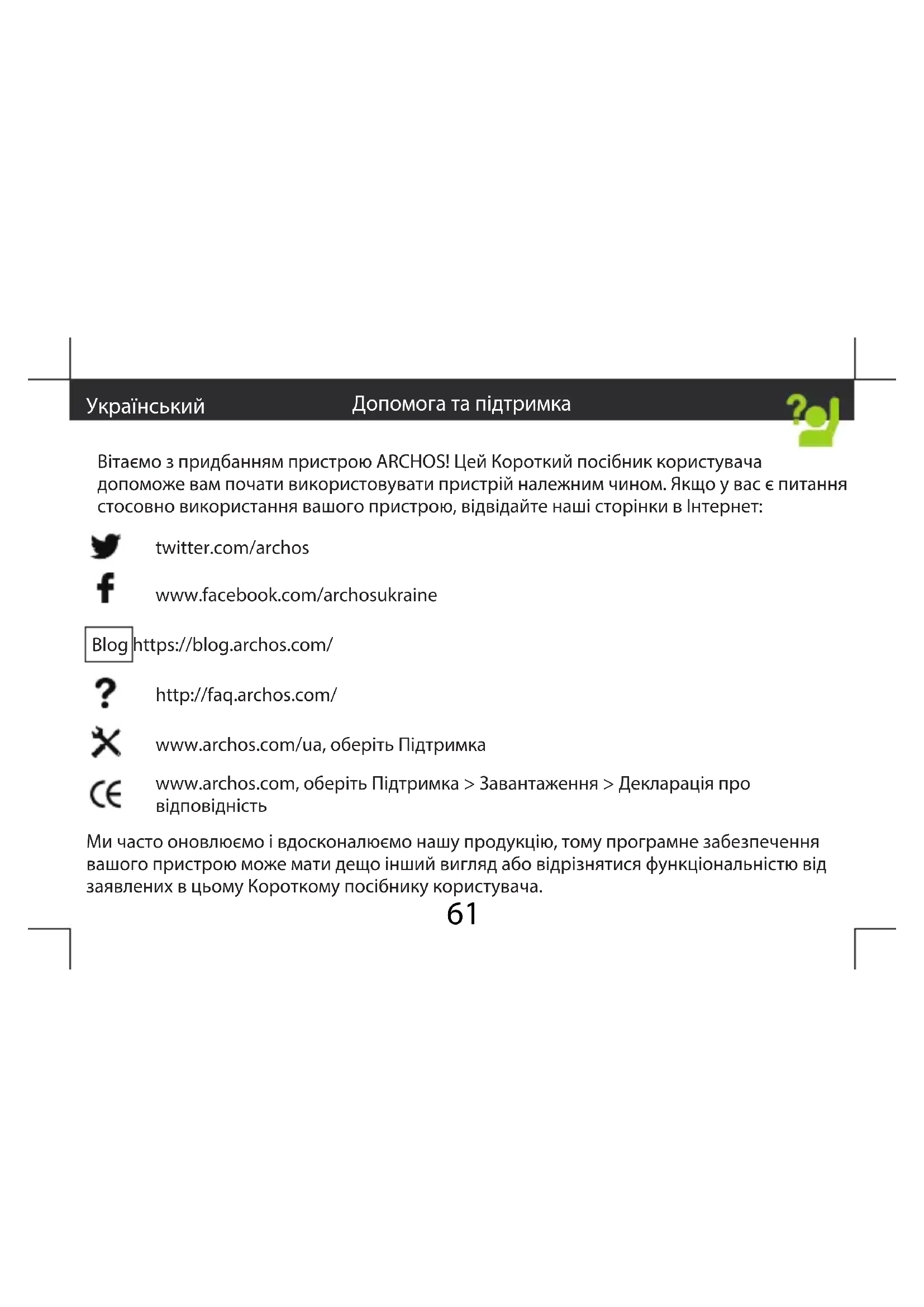 ПОСІБНИК КОРИСТУВАЧА 50b Cobalt ARCHOS
