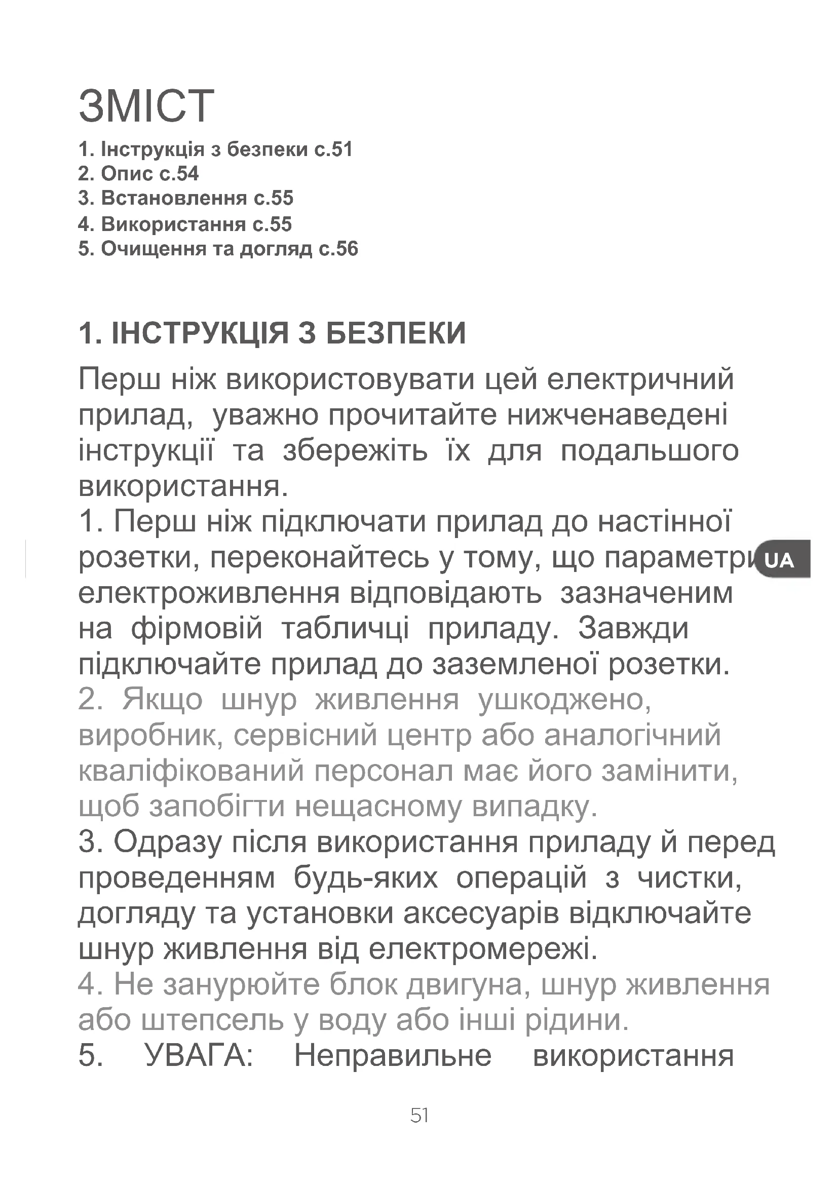проведенням будь-яких операцій з чистки, догляду та установки аксесуарів відключайте шнур живлення від електромережі.