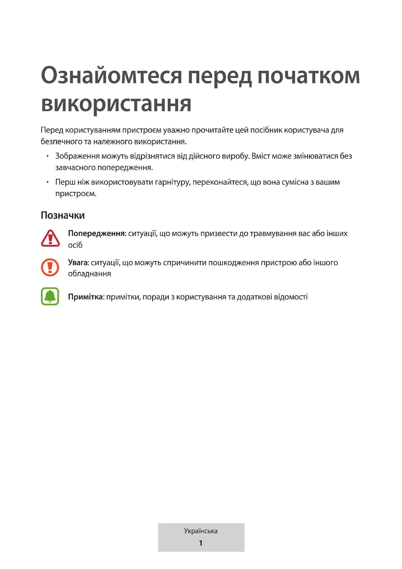 Ознайомтеся перед початком використання Перед користуванням пристроєм уважно прочитайте цей посібник користувача для безпечного та належного використання.