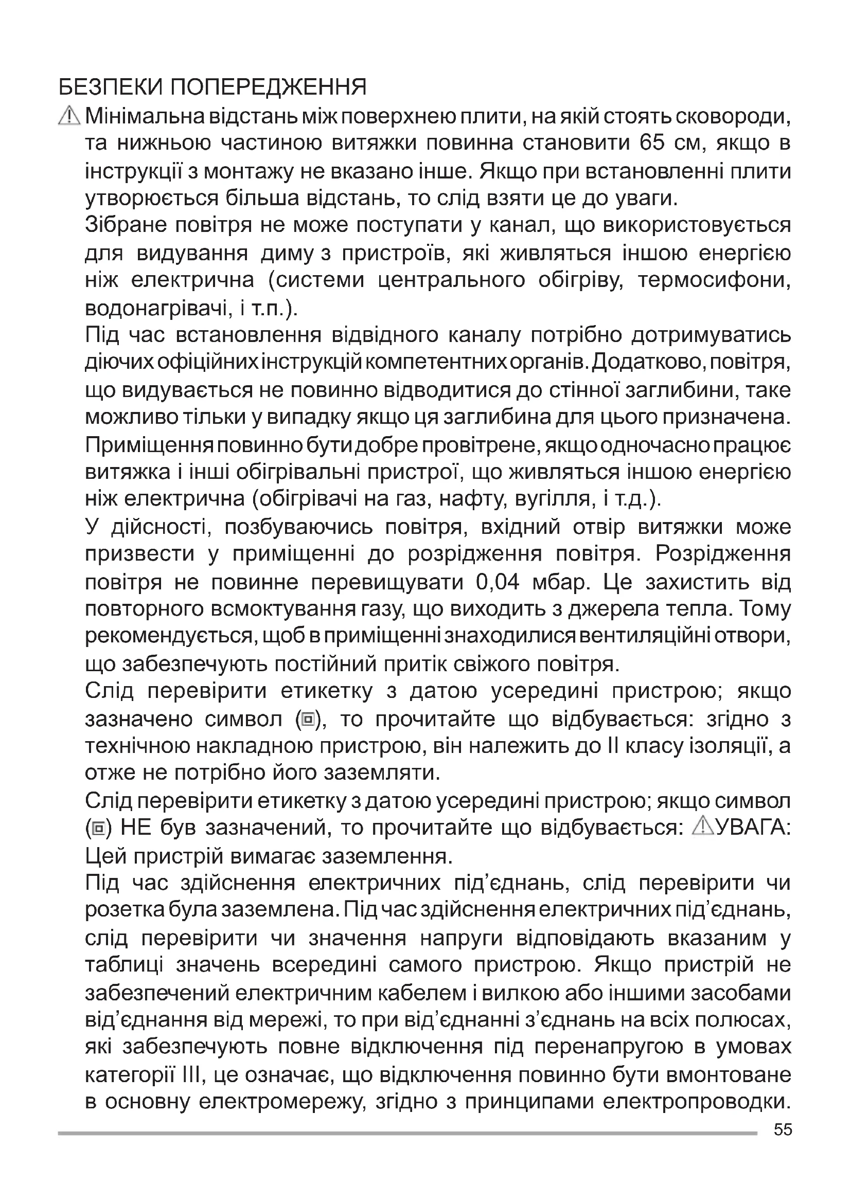 особа зі схожими кваліфікаціями. Попередження: якщо болти або кріпильні засоби не були прикріплені згідно з даною інструкцією, то це може спричинити електричну загрозу. Пристрій мусить бути встановлений кваліфікованою особою згідно з інструкцією. Слід уникати матеріалів, які можуть викидати полум’я ( фламбування) поблизу пристрою. Не фламбувати під кухонною витяжкою.