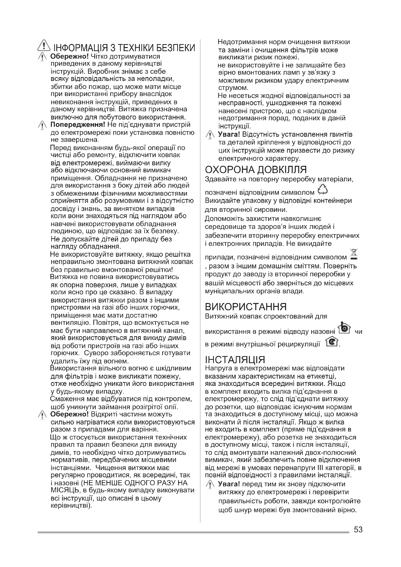 Витяжка Інструкції з використання 53