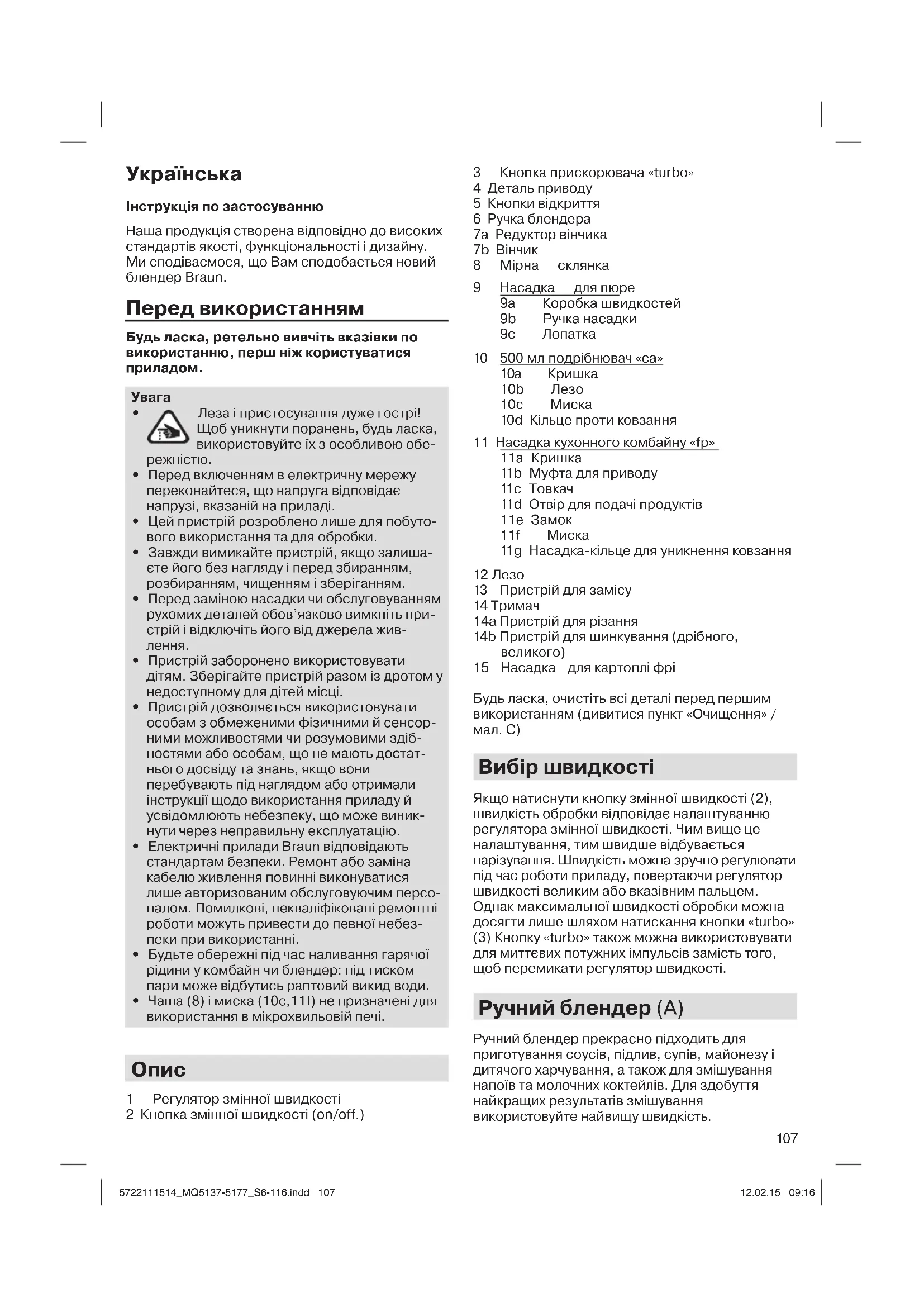 ПОСІБНИК КОРИСТУВАЧА Multiquick 5 Vario MQ 5137 Sauce+ BRAUN