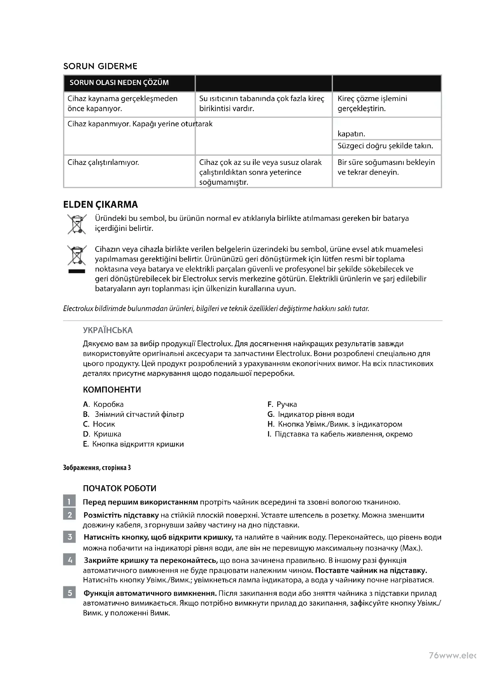 EEWA3330 - чайник ELECTROLUX - Безкоштовний посібник користувача